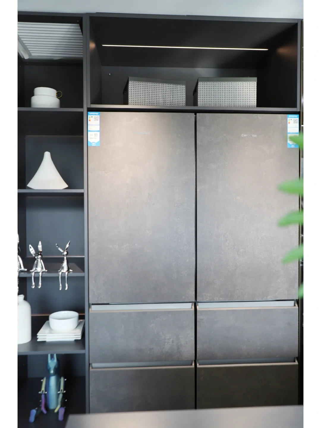 原创六大嵌装技术是真的破圈了,冰箱两侧和橱柜无缝0厘米平行嵌入,有这个优势,家里户型大的,可以自由拼合两个冰箱,无缝0厘米侧面嵌入,打造一面冰箱墙都没问题。