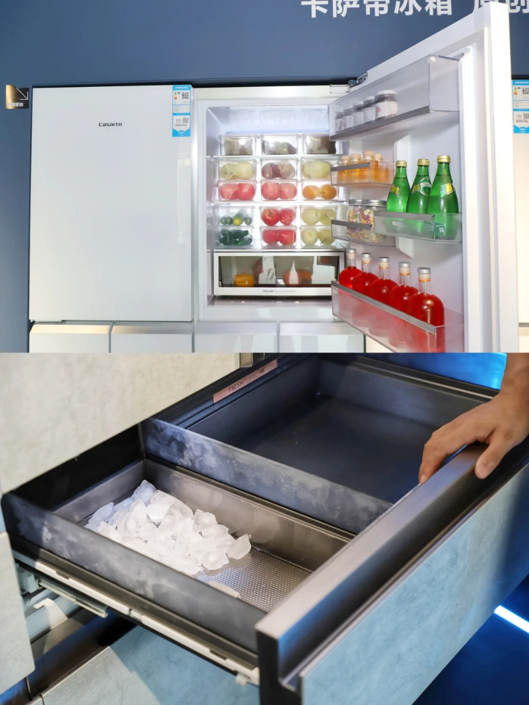 体验中心的冰箱展区让我大开眼界,卡萨帝原创平嵌冰箱,“隐藏细节设计”符合我对未来厨房的想象,当橱柜和冰箱融合一起,是美学空间,也是家居的好帮手!