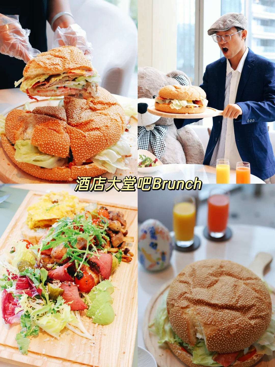 酒店大堂吧里的网红大汉堡是Brunch的不二之选,西式大拼盘和沙拉满足多种口味。