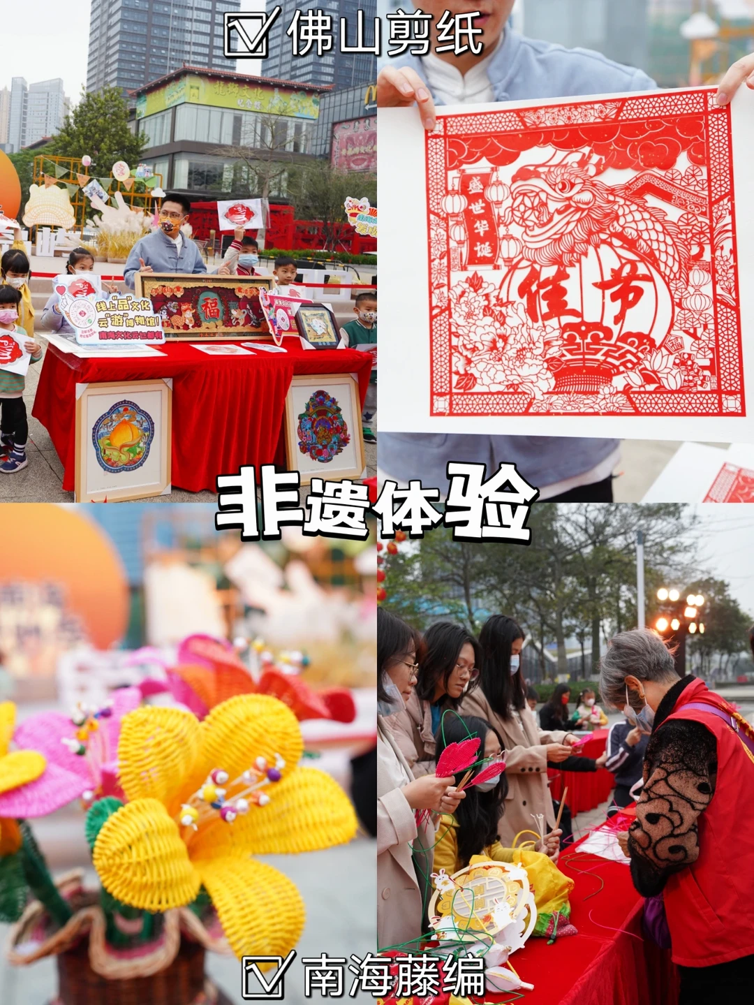 我们来的这一次是6.0元宵主题市集,现场可以体验南海非遗文化,跟非遗老师一起DIY佛山剪纸,乐安花灯,南海藤编,能够亲身体验一次也是值了!