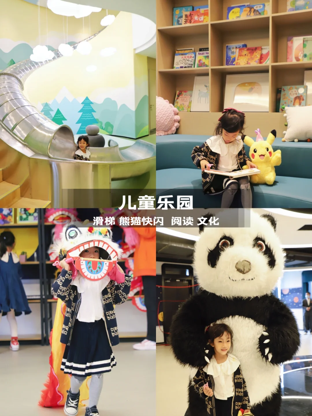 [向右R]儿童乐园有托管服务,记得进去先看儿童乐园日程表,每天从早到晚都有不一样的活动,有老师带着小朋友做游戏,现场超受小朋友欢迎的就是一层楼高的旋转滑梯,小朋友玩半天都不喊累,另外还有超大儿童乐园空间,熊猫快闪,有阅读区,篮球,广府狮文化,积木等等,是假期遛娃好去处啊!