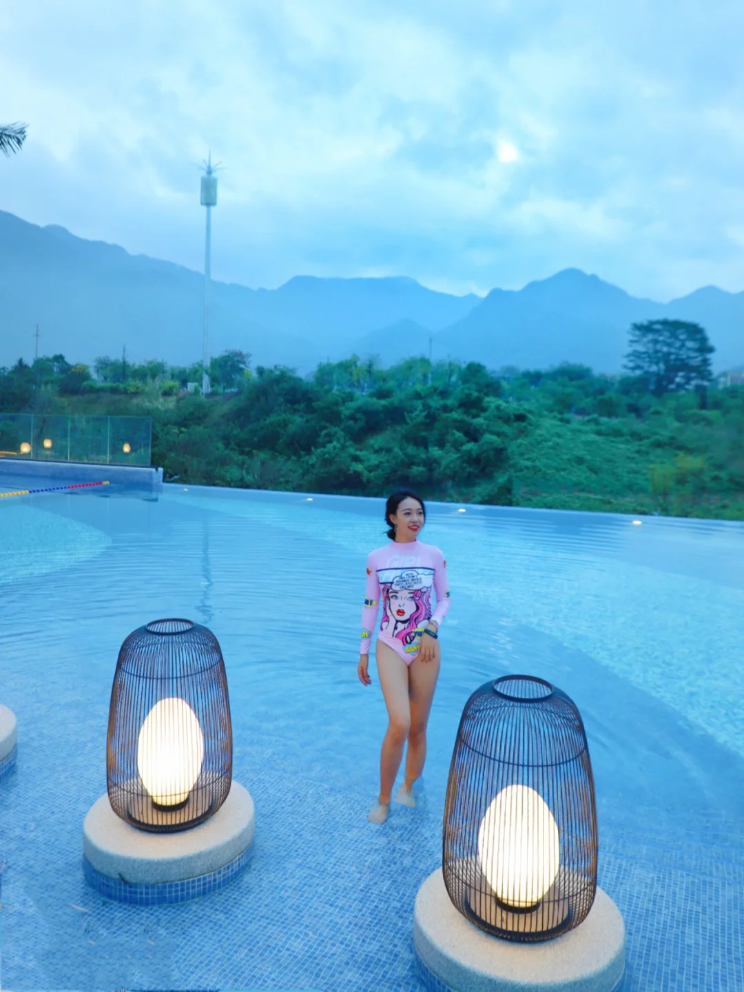 [向右R]无边际泳池,山水之间灵感展现,在这里游泳仿佛在山水穿越,泳池对着峰峦叠嶂,有一种桂林山水的风情,另外这里有水上项目,儿童泳池,后悔没有早点来!