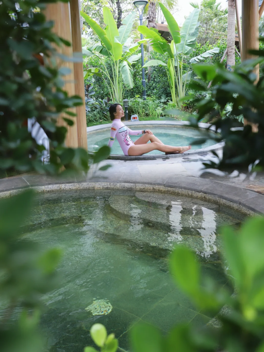 [向右R]泡温泉,酒店拥有户外温泉19个,据说灵感理念来自道家五行元素,结合中药草本精华打造,点滴温泉水,水滑洗凝脂;