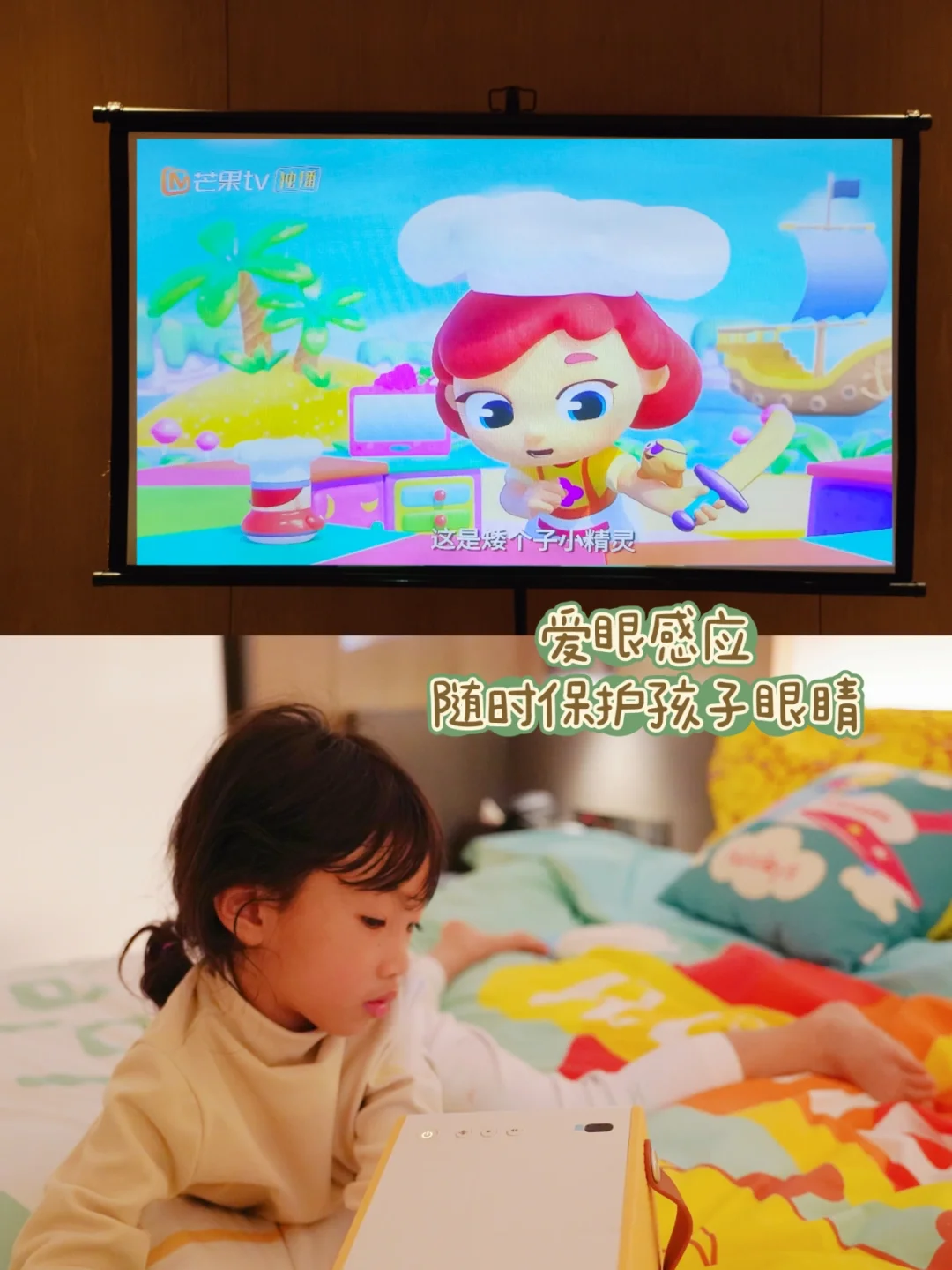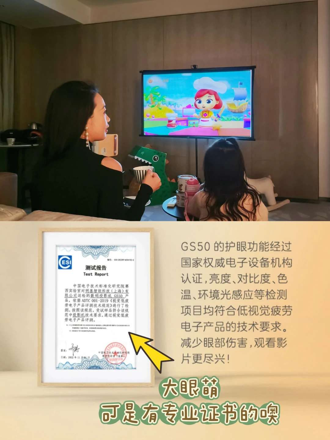 小朋友看屏幕太久会影响视力?!我选投影之前做了超多功课,就是看上投影通过墙面漫反射更护眼,而且这台“大萌眼”有专业低疲劳护眼认证,给孩子用更放心。