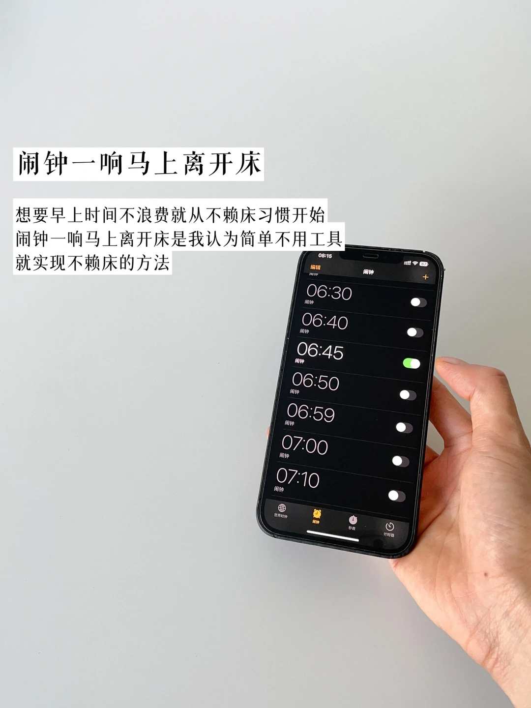 1、闹钟一响马上离开床
