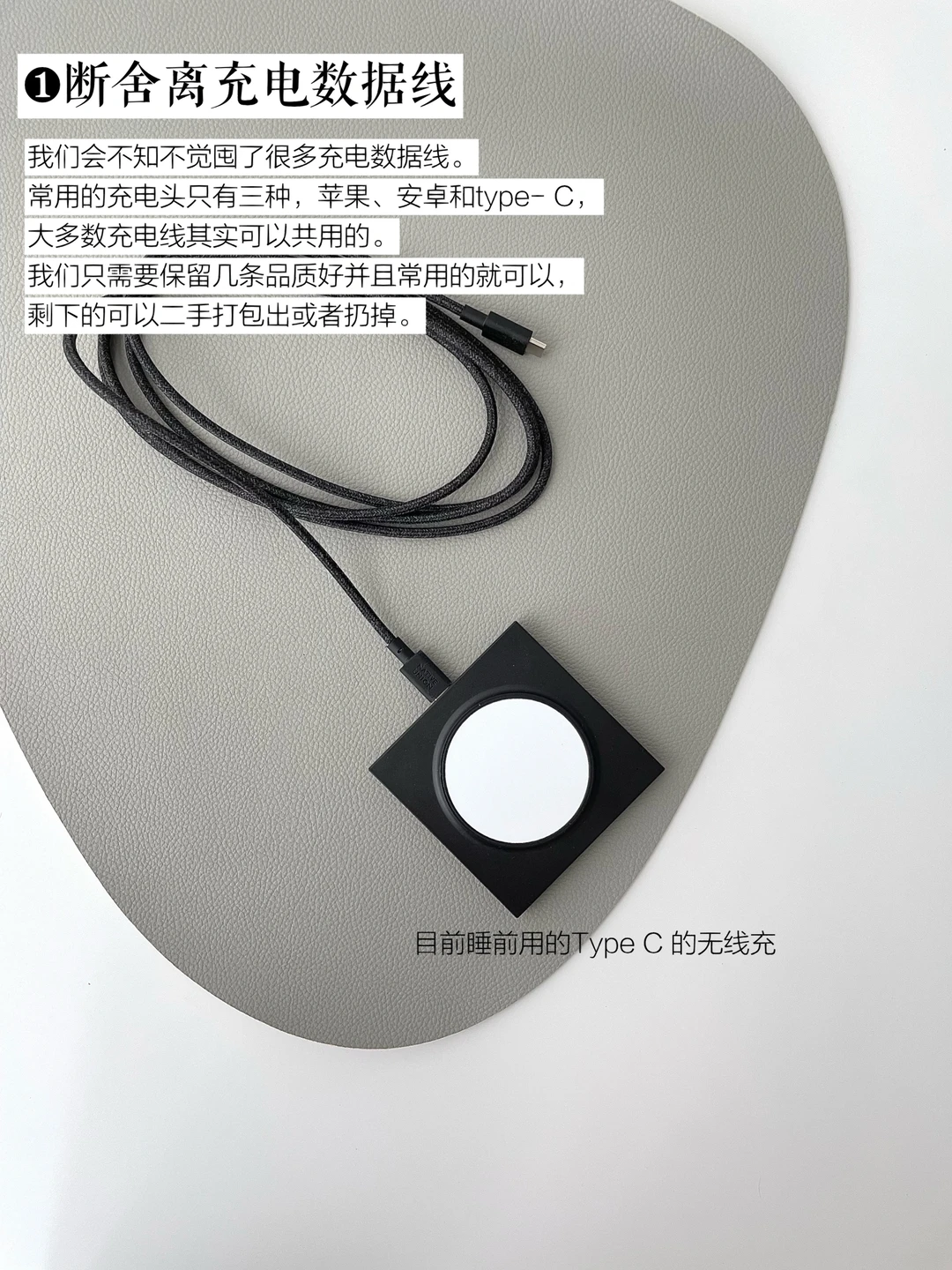 我们会不知不觉囤了很多充电数据线。常用的充电头只有三种,苹果、安卓和type- C,大多数充电线其实可以共用的。我们只需要保留几条品质好并且常用的就可以,剩下的可以二手打包出或者扔掉。