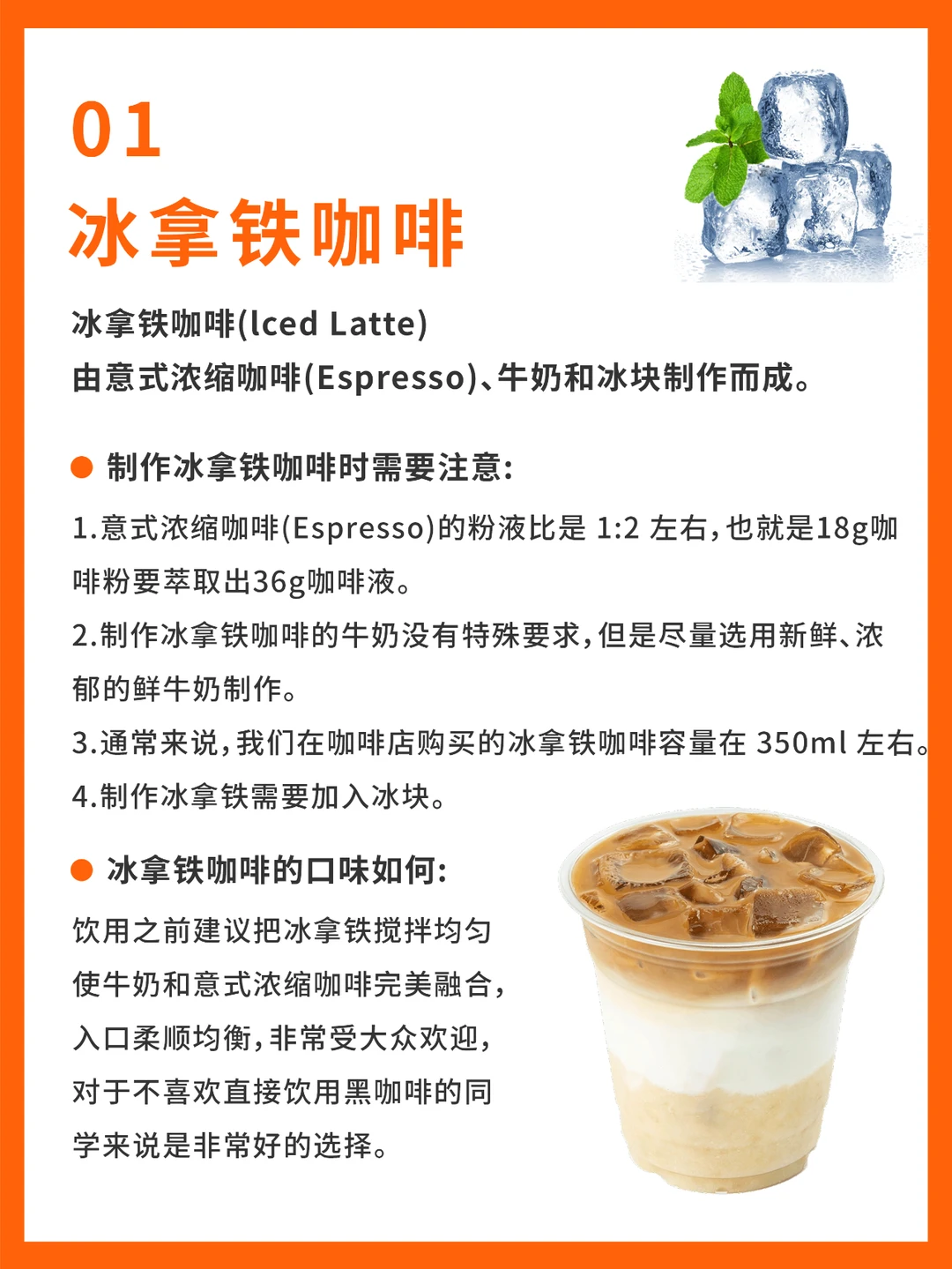 1️⃣冰拿铁咖啡(Iced Latte)