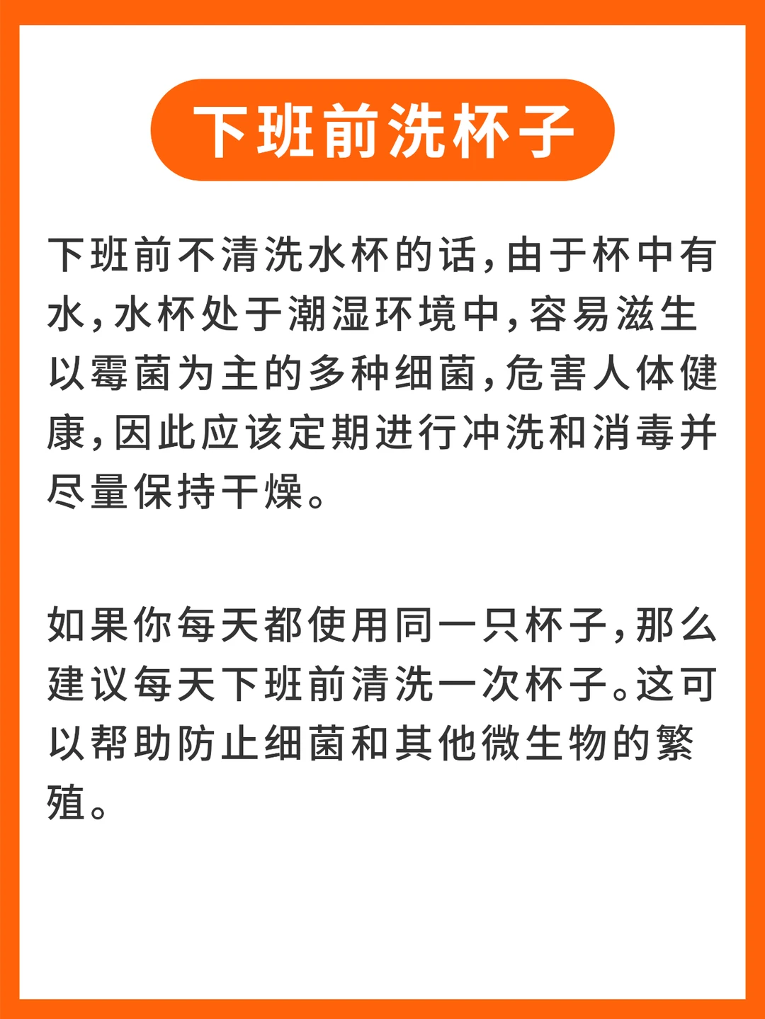 因为水杯常年潮湿,如不定期清洗消毒,就会成为霉菌滋生地。因此,若是你每天都使用一个杯子,建议至少每天下班前清洗杯子哦~