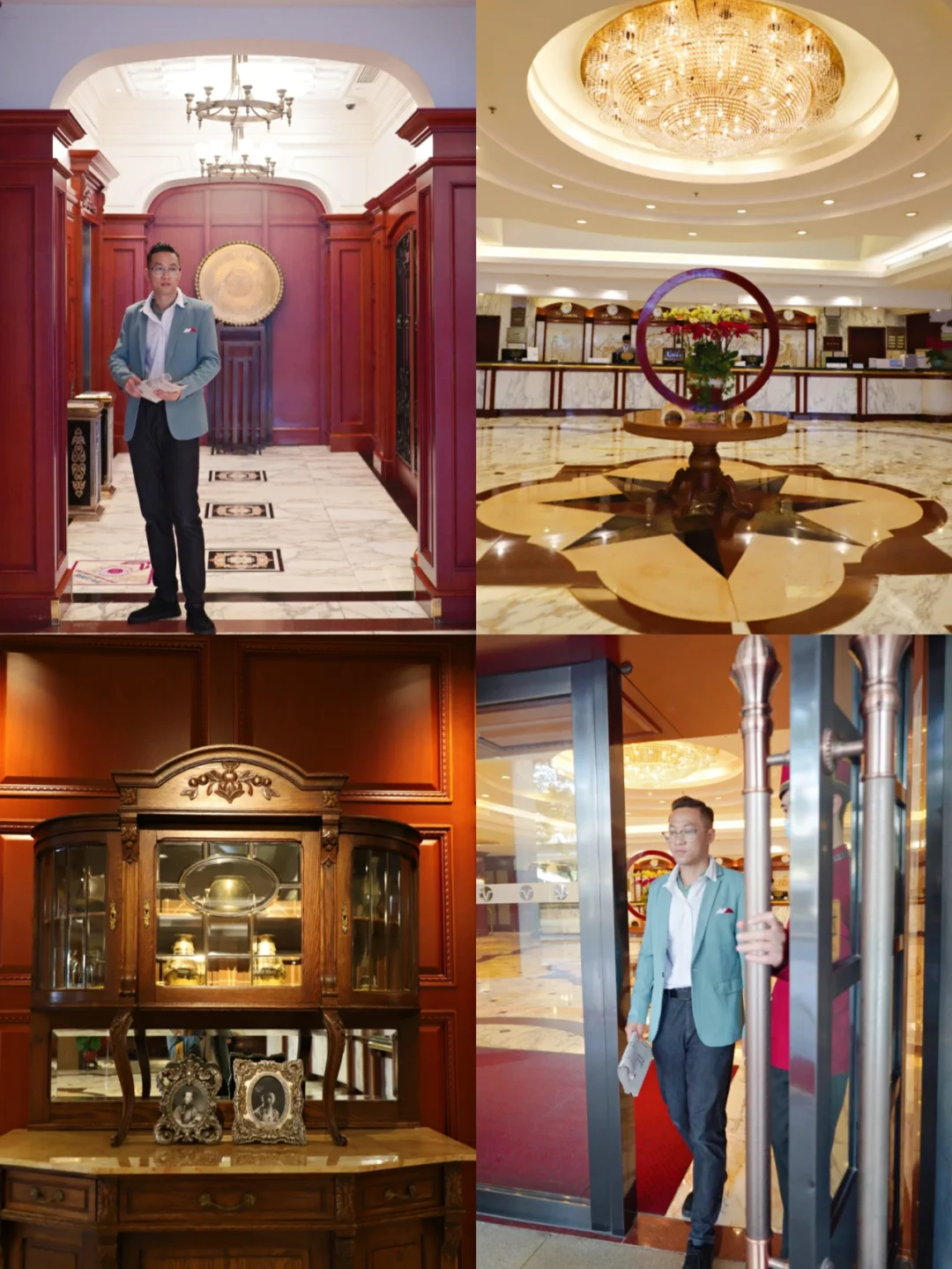 ②酒店大堂,前台是超大的红木,非常独特,非常耐看的感觉,还有花砖,各种文物摆件;