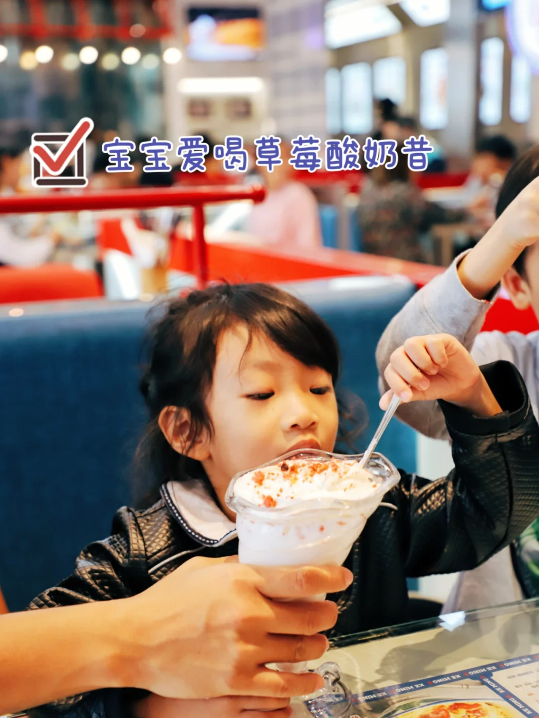 像我带娃去探店打卡,你就可以点上一杯宝宝爱喝草莓酸奶昔,口感绵密,糖果的香气非常浓郁。