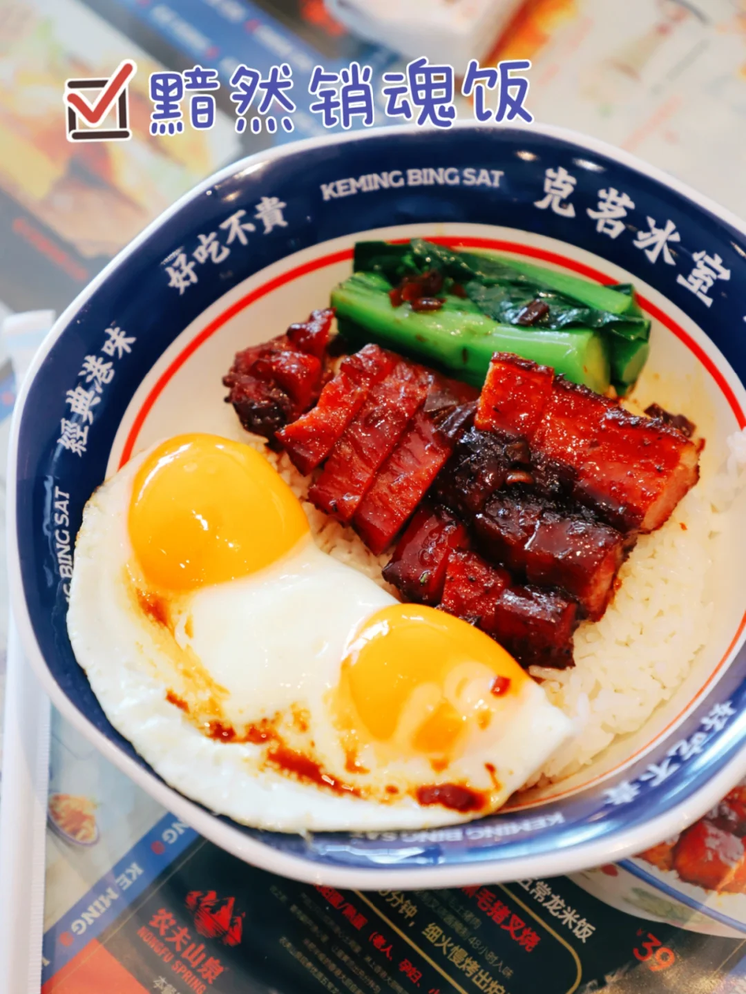黯然销魂饭,那个黑毛猪叉烧肉质紧实带着酱香,再加一个太阳蛋,变身捞饭更好吃。