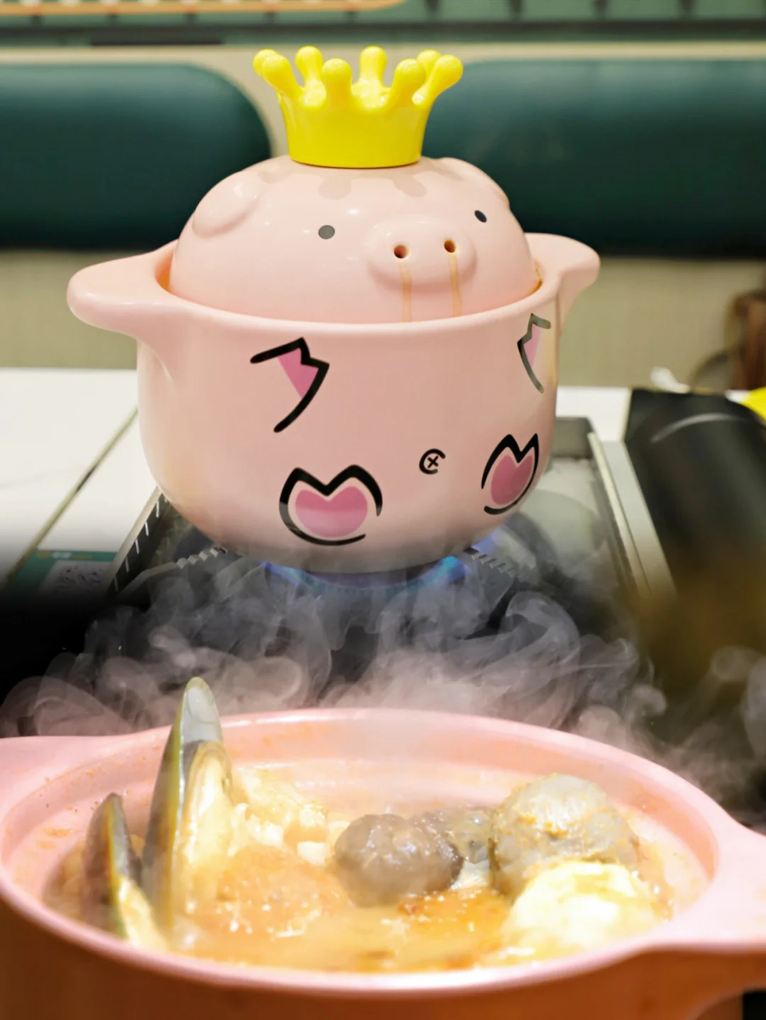 番禺新中心CBD番禺天河城可以吃上超正的烧腊啦,被幸运女神眷顾的吃货,这一次可以在这个餐厅品尝到冬季特推「沙爹海鲜猪猪锅」,瞬间被东南亚风情虏获,肉丸,青口,烧肉等多种食材,非常丰富,热气腾腾,非常适合冬天吃。