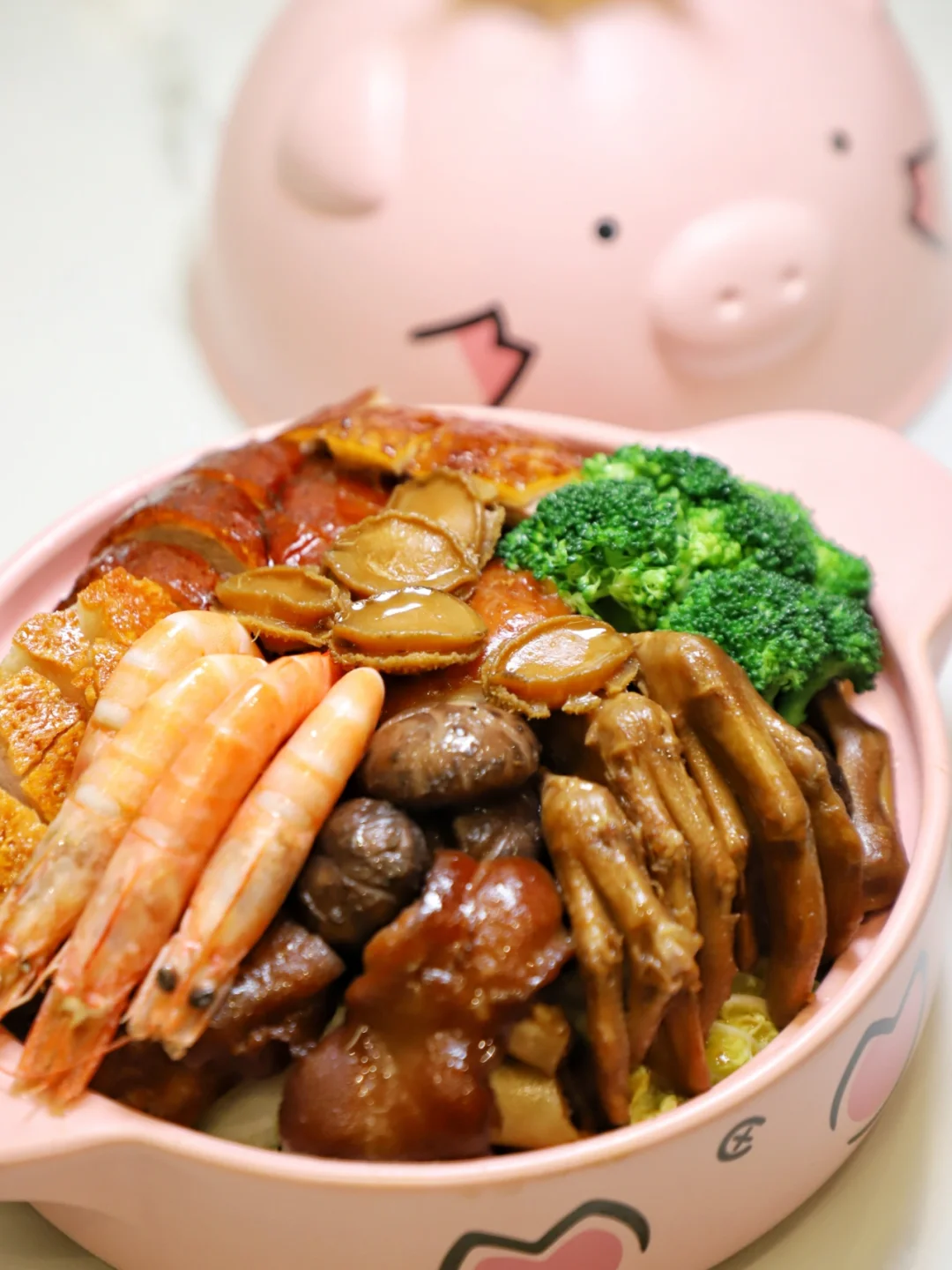 店里还有大红大紫的菜单——猪猪煲盆菜