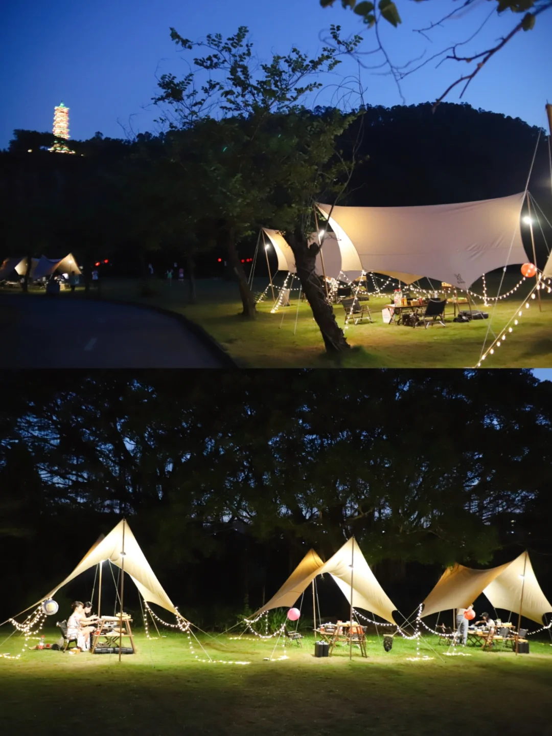 在这里隐藏着一个光合四季露营地,就是一个拎包露营的地方,天幕,露营桌椅,还有夜晚灯光,搭配露营烧烤美食,一应俱全,沉浸式体验露营,成为一个名副其实的露营玩家真是太easy了。