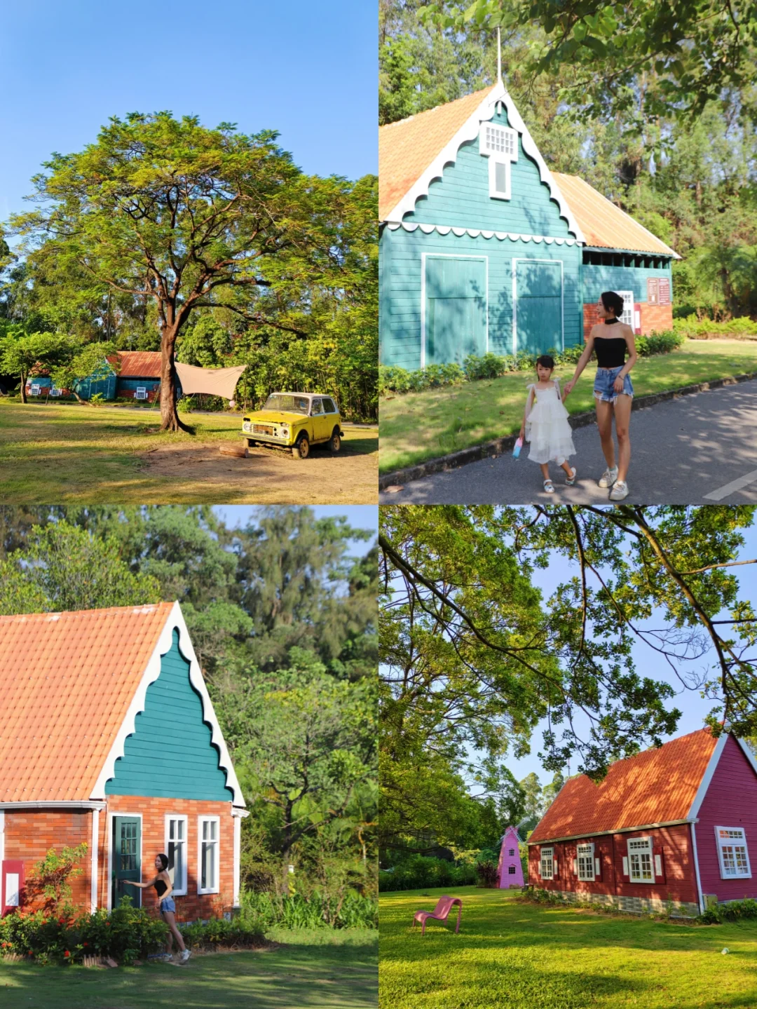 露营地打卡点:欧式小木屋,风车,老爷车,园林都很适合拍照打卡。