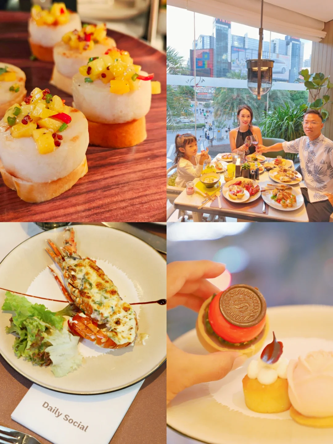 每一次吃自助餐都感觉没发挥好啊!怎么吃完一轮,还有这么多吃的,为什么就在酒店玩,一天走都有六千步,都是在自助餐厅跑来跑去拿餐食积累的,酒店自助晚餐美食多种多样,喜欢这里一口精巧美食,比如芝士配腰果,迷你三文鱼汉堡,一口元贝,吃的是精致,感觉确实是物超所值,加上香槟和红酒都是任喝,大快朵颐的美食享受。