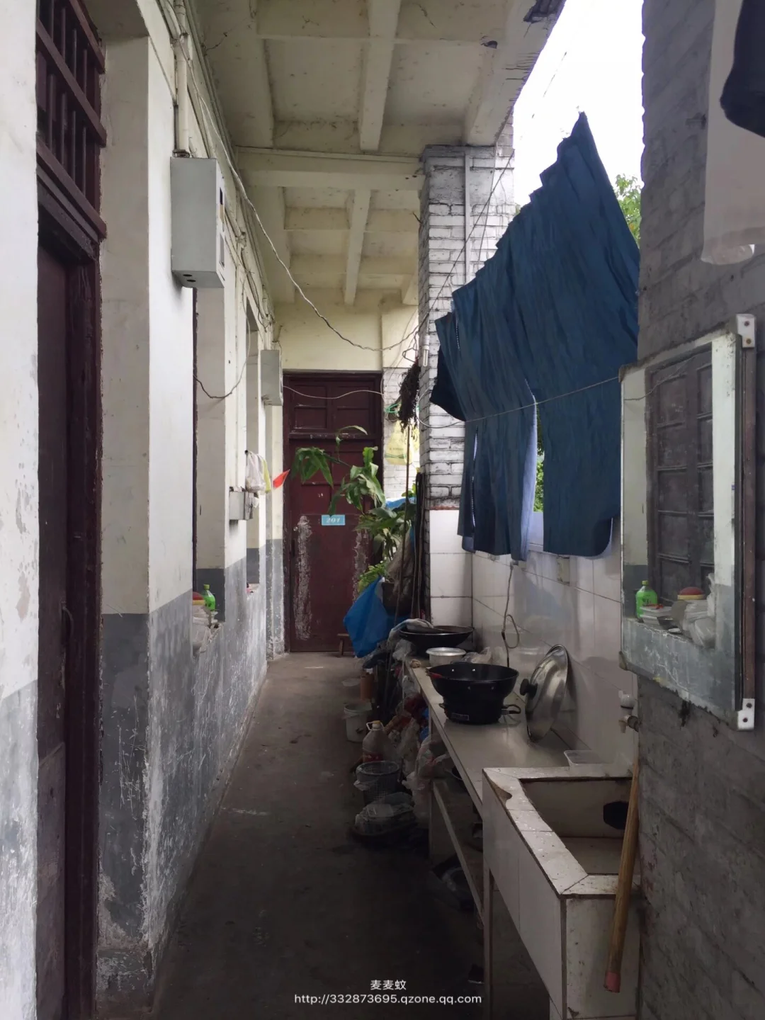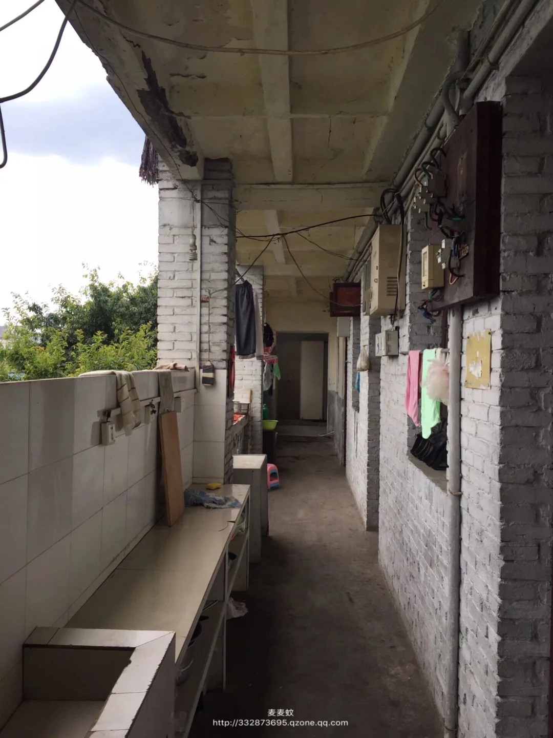 越往渝铁村里面走路越窄,左边是高墙铁皮挡住的火车站,右边是一排排家属楼,修建的时间不一致,风格也不一样,有青砖房、混凝土房。我仰头,青砖房堆砌的造型还真好看,墙体夯实紧密,过道处走廊的青砖又别具匠心地设计了许多空心的图案。