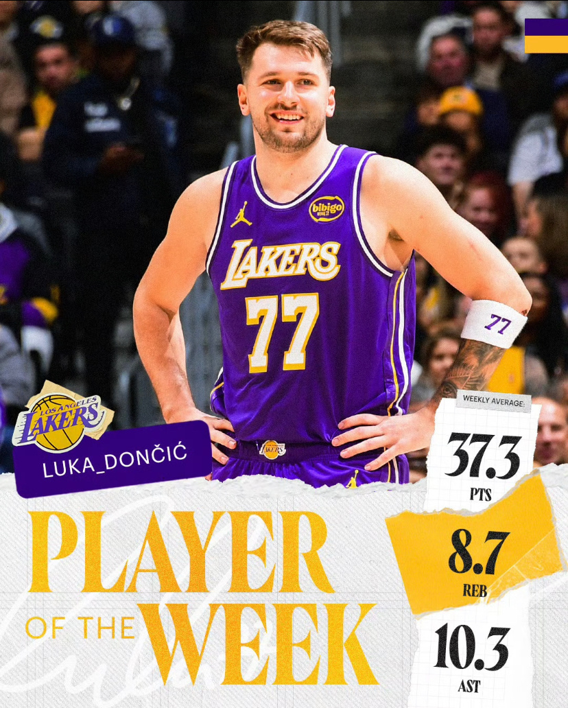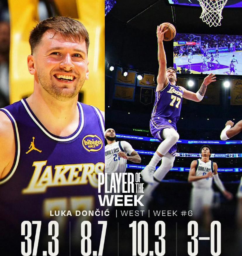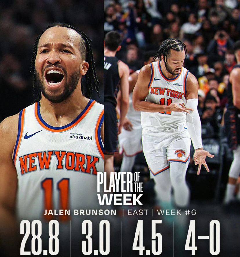 东契奇布伦森NBA周最佳NBA今日公布第六周东西部周最佳球员,卢卡·东契奇与杰伦·布伦森同时当选。东契奇布伦森当选周最佳西部由东契奇获得,他上周场均轰下37.3分8.7篮板10.3助攻,命中率高效,率领湖人取得3胜0负。对阵快船关键战,他独揽43分9篮板13助攻,更连续六场达成“30+5+5”,创下湖人队史纪录,这也是他生涯第15次获此荣誉。东部则由布伦森当选,他场均贡献28.8分3篮板4.5助攻,三分命中率超40%,带领尼克斯取得4胜0负的全胜战绩,其中对阵雄鹿独得37分,个人生涯第8次收获周最佳。两位昔日是达拉斯队友,如今各自在东西部登顶,以同样耀眼的表现一同加冕,本周最佳实至名归