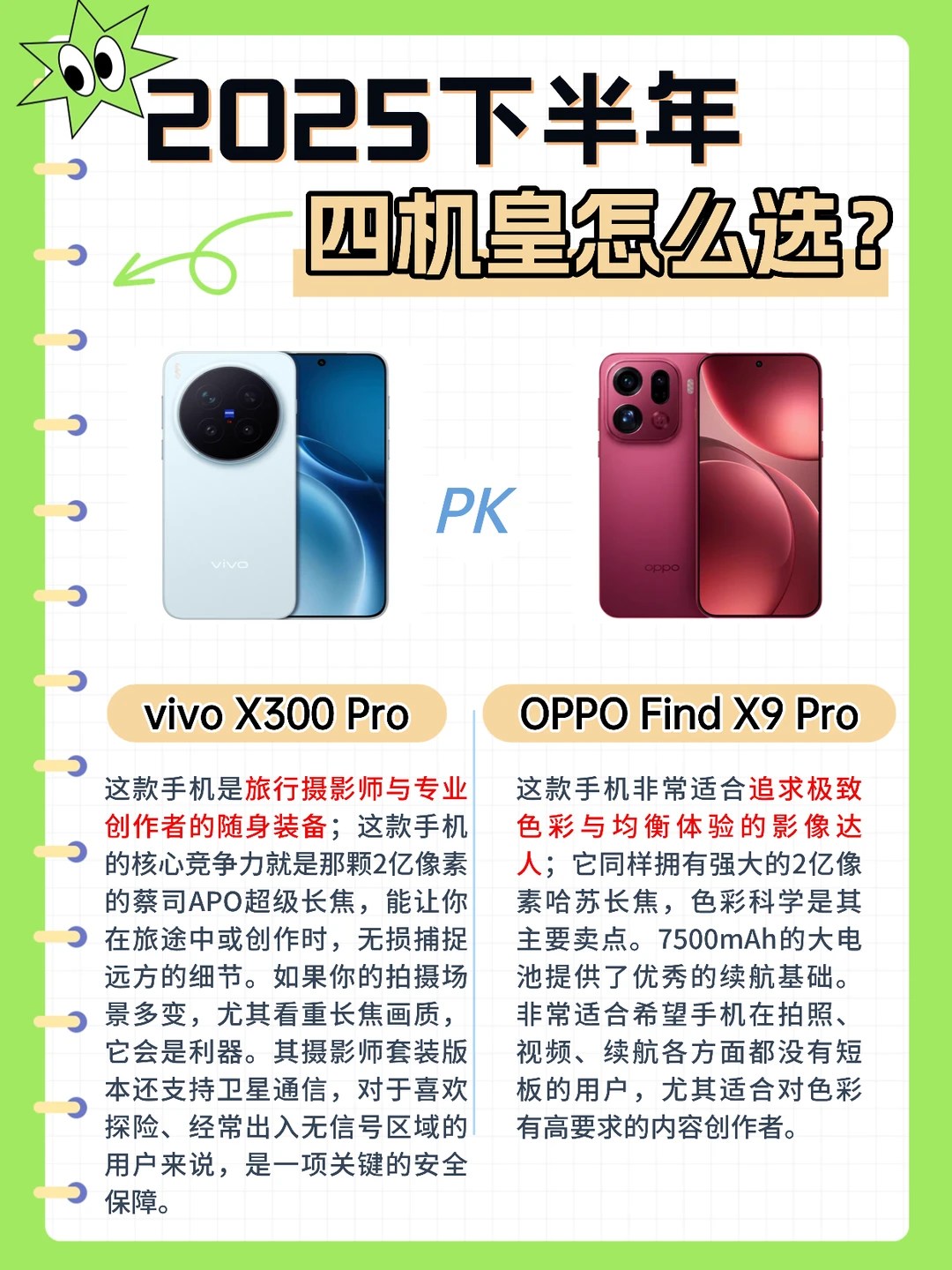 2️⃣爱拍有质感的照片,还想要长续航 → 重点看 OPPO Find X9 Pro