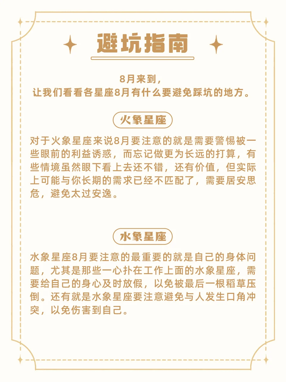 温馨提示:星座运势只是参考,热爱生活好运加倍! 让我们看看十二星座8月有什么需要注意避免踩坑的地方! 星座 星座运势 十二星座