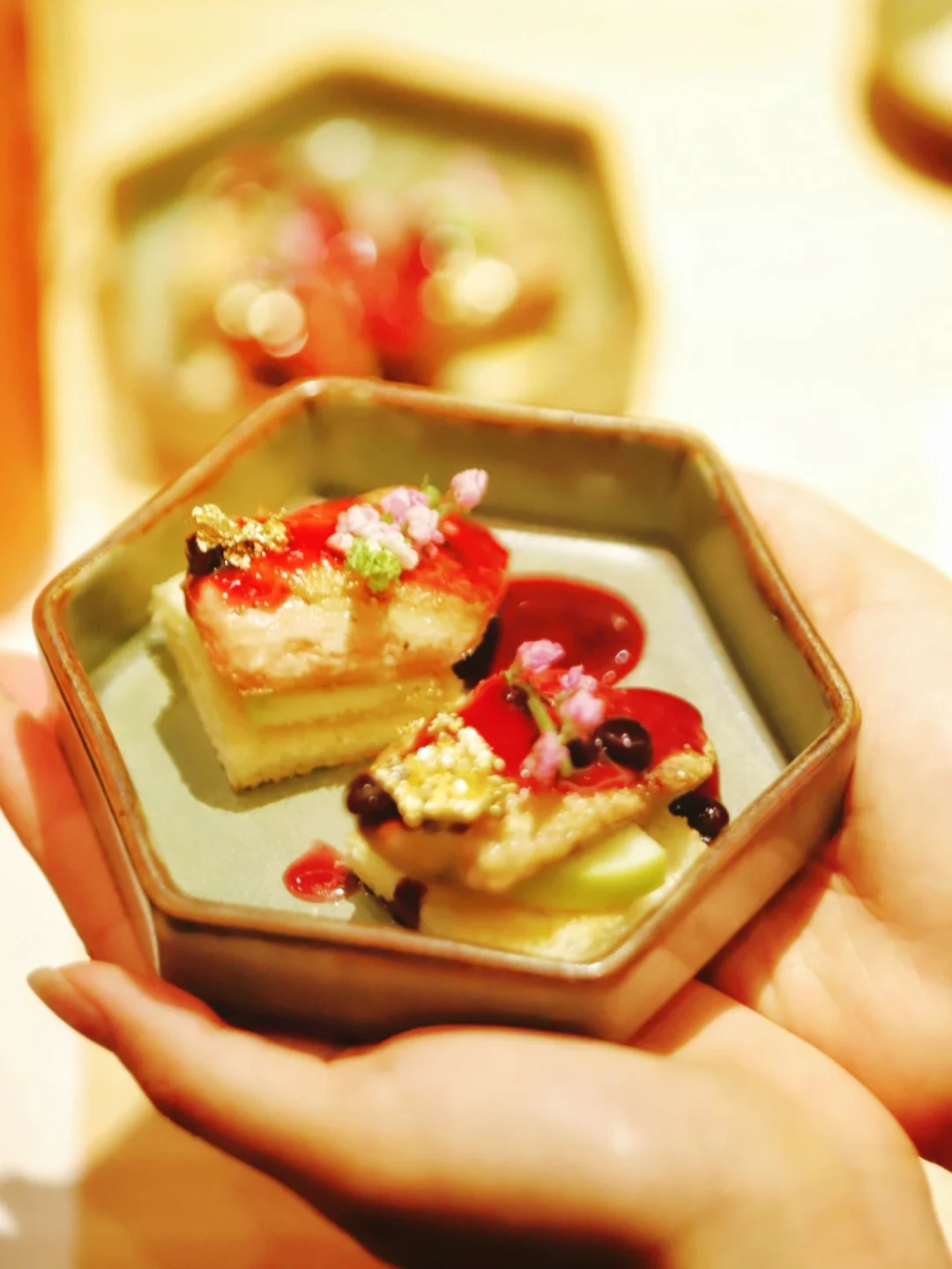香煎鹅肝:下次来还会点,卖相出品已经很好了,口感清新不油腻,夹心的苹果甜度刚刚好,果然是甄选的食材。