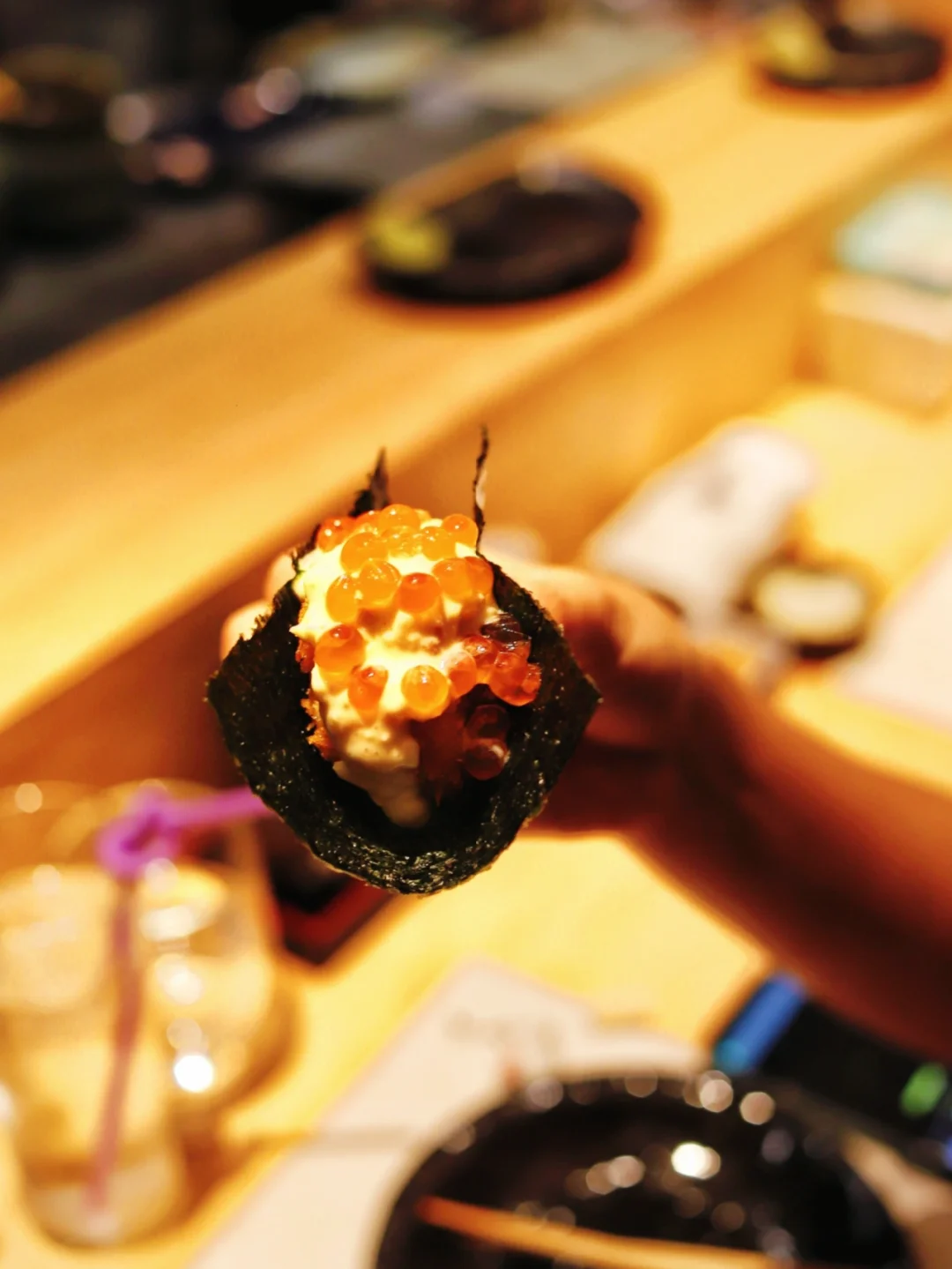 环境:很日式,只有吧台位置,围着厨师,据说是这种日式料理的经典布局,是可以和厨师面对面交流的,我们在就餐的时候也的确得到厨师的就餐建议,交流还是轻松有趣的。
