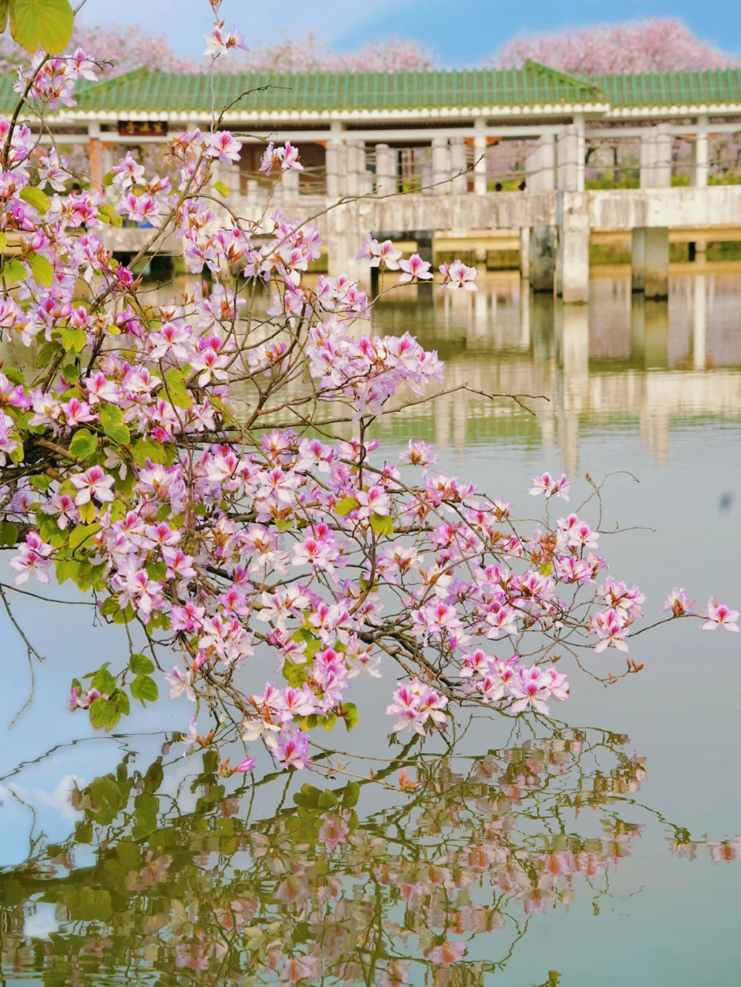 [种草R]观涟亭旁边有一个目前我发现唯一的“水上紫荆花”,小姐姐们在这里拍好出片