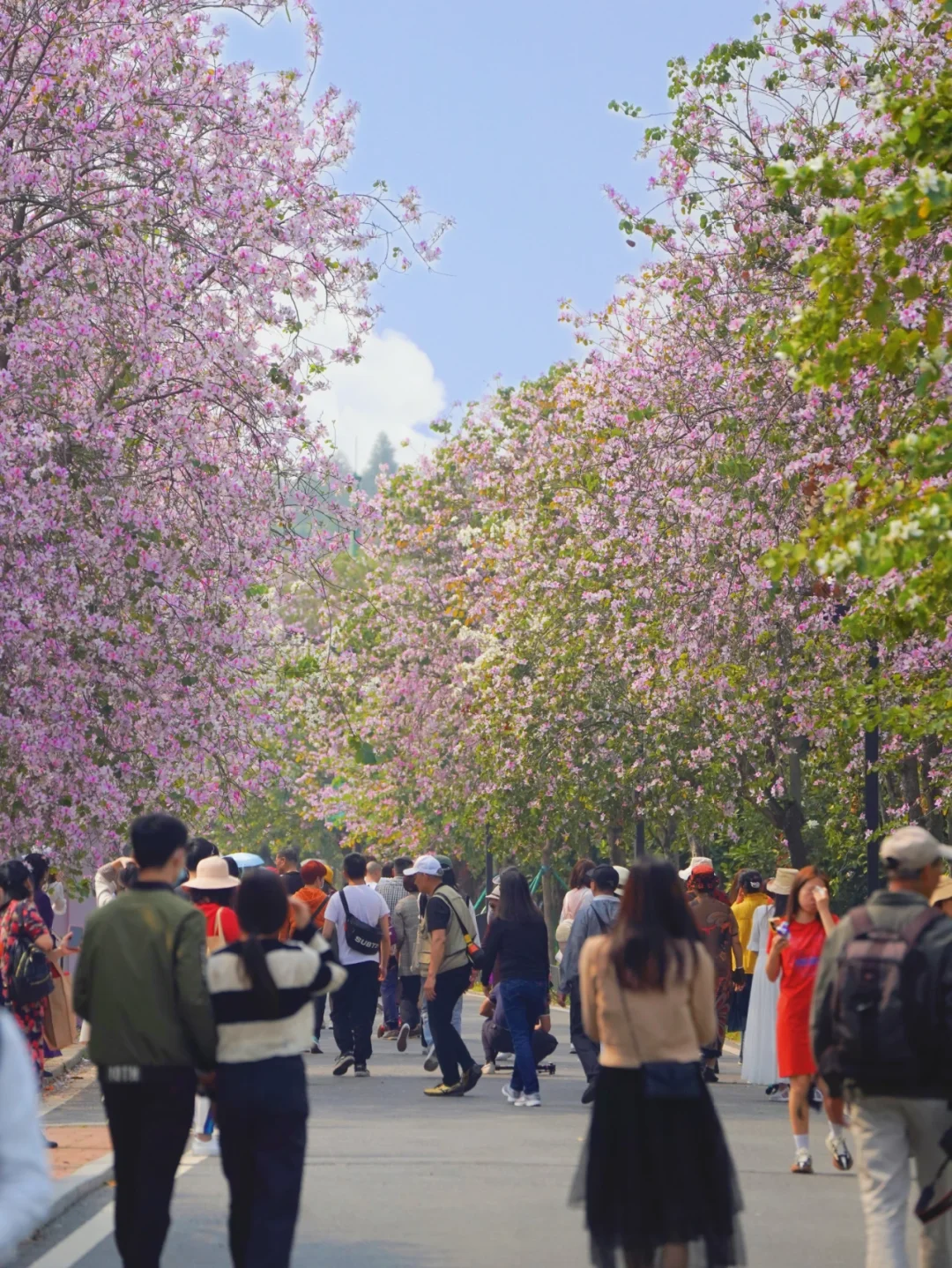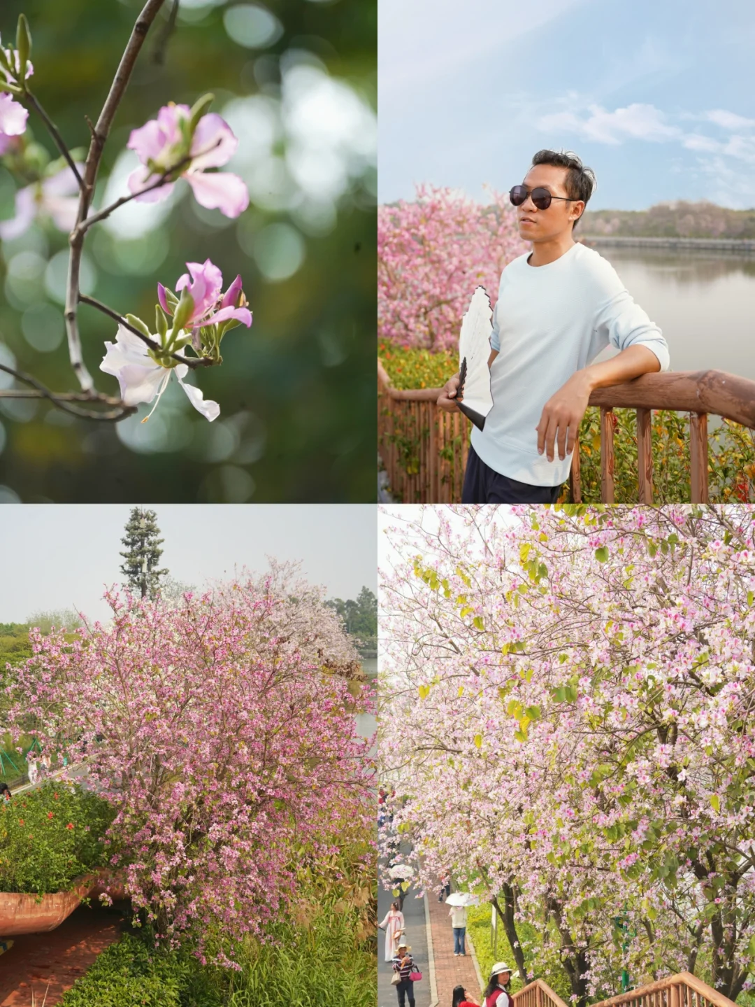广州赏花,3公里的紫荆花海现在开得更加茂盛了,发现超多神仙打卡位,来看花的人山人海。似乎全广州的人都来了![向右R]到海珠湖才发现,这里的此花开尽更无花的感觉!