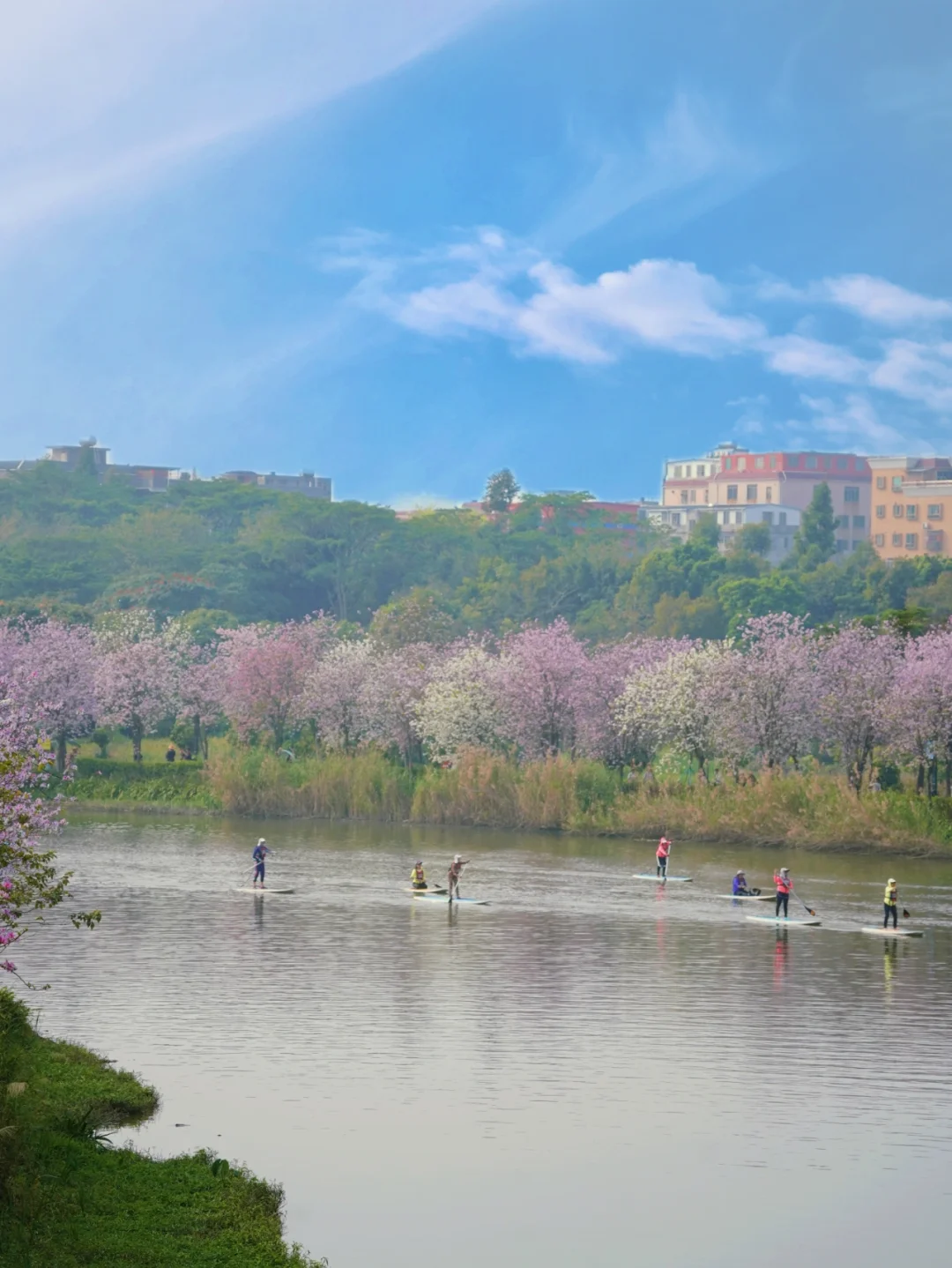 下午2点钟入园,慢慢边赏花边打卡的,因为花海足够大,拍摄打卡位很多的,而且接近4点还可以看到浆板游玩队伍,也是海珠湖上看到的美丽风景线;