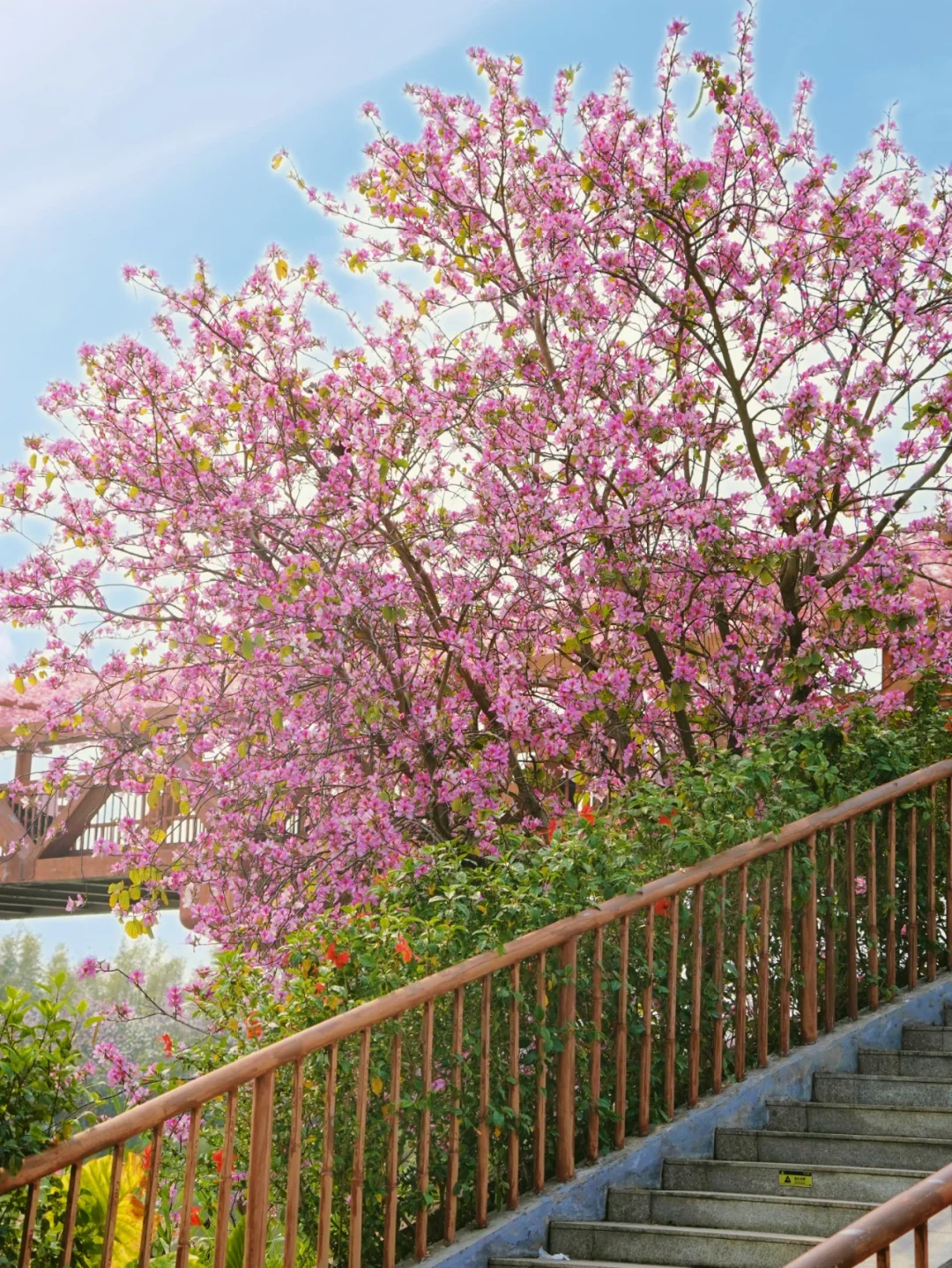 [种草R]桥上下来,会有一条更好拍的紫荆花走廊哦,拍出浪漫气氛