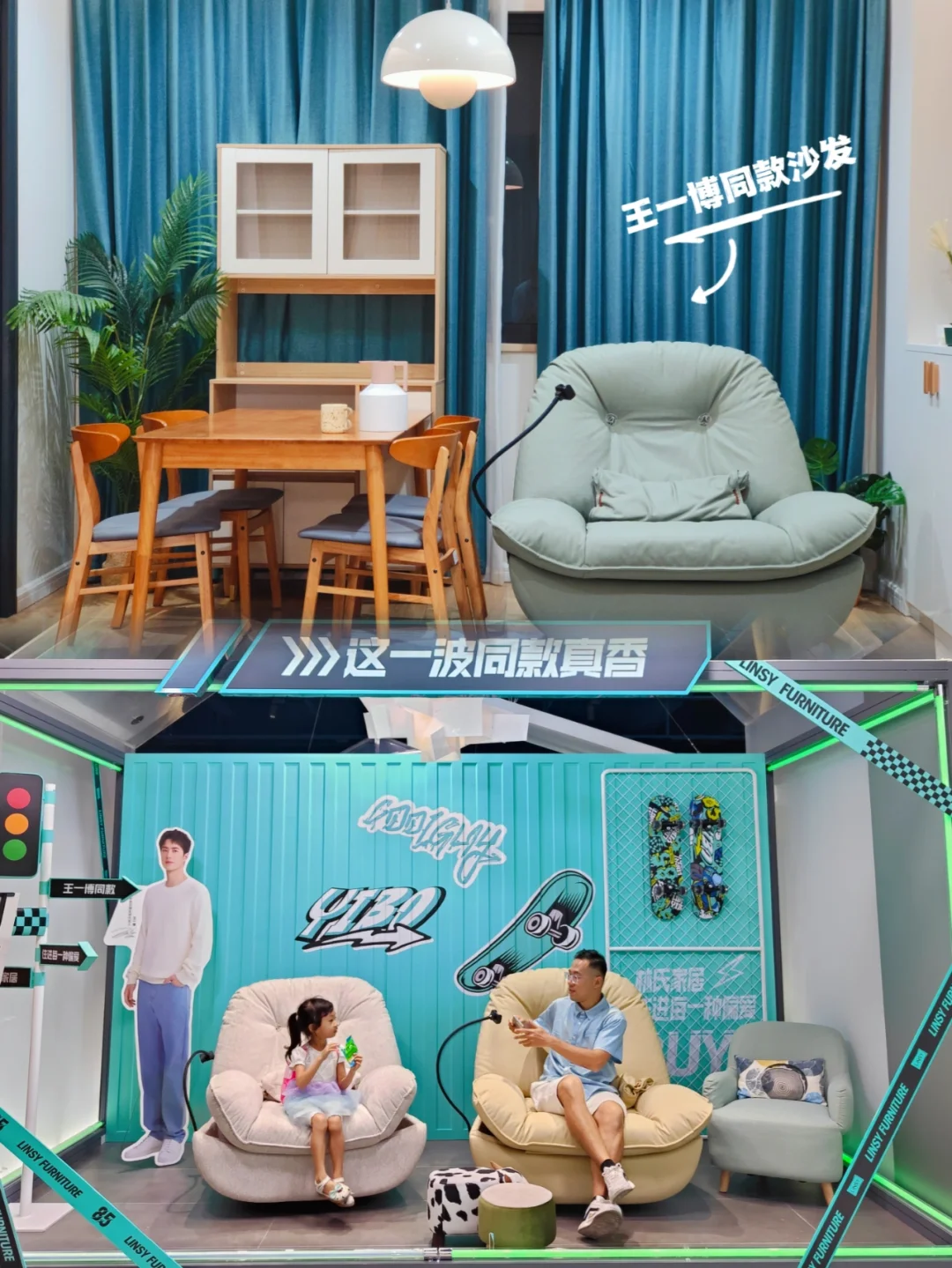 [探店R]林氏家庭开放日值得前去打卡,一起来pick你偏爱的家,迫不及待的小伙伴可以到附近线下门店体验明星同款沙发[买爆R],也可以等到双⑩一入手更划算,还有王一博周边礼盒送呢🎁
