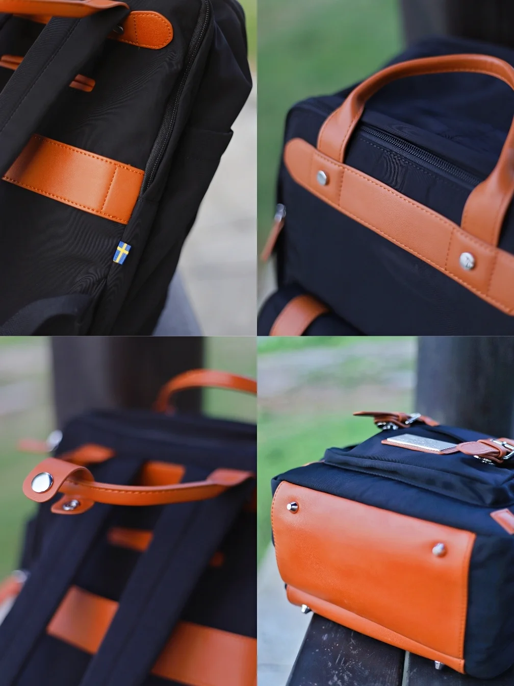 既然是能扛我重型拍摄器材的背包,必须要坚固耐用,背包使用素食皮革和涤纶拼接面料,很不一般,不仅是耐磨,还一定的防水功能,有了它,我可以更好地陪伴家人,探索更多的旅程。 GASTON LUGA[品牌]