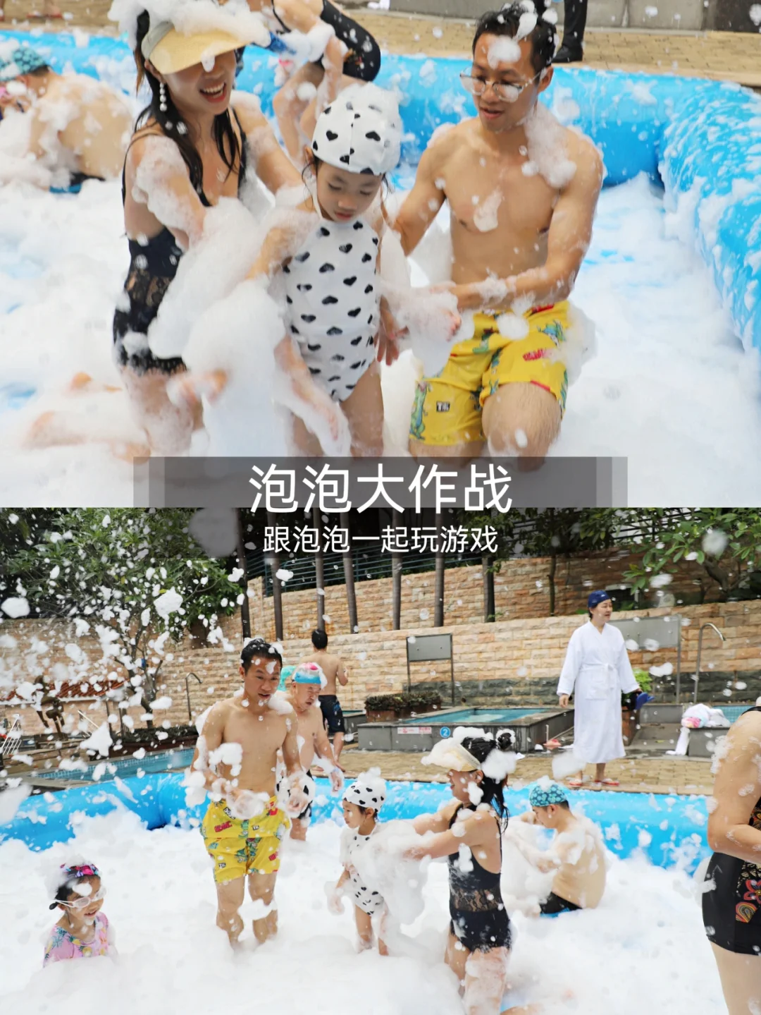 泡泡大作战,看到都很治愈,大小朋友都完成一堆, 这个应该是夏天的标配啊,这么一看现场就很像是夏天的雪堆里玩耍。