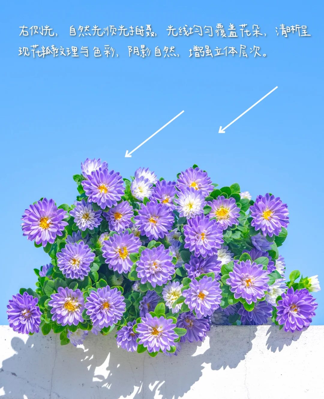 2.光线:右侧光,自然光;顺光拍摄,光线均匀覆盖花朵,清晰呈现花瓣纹理与色彩,阴影自然,增强立体层次。