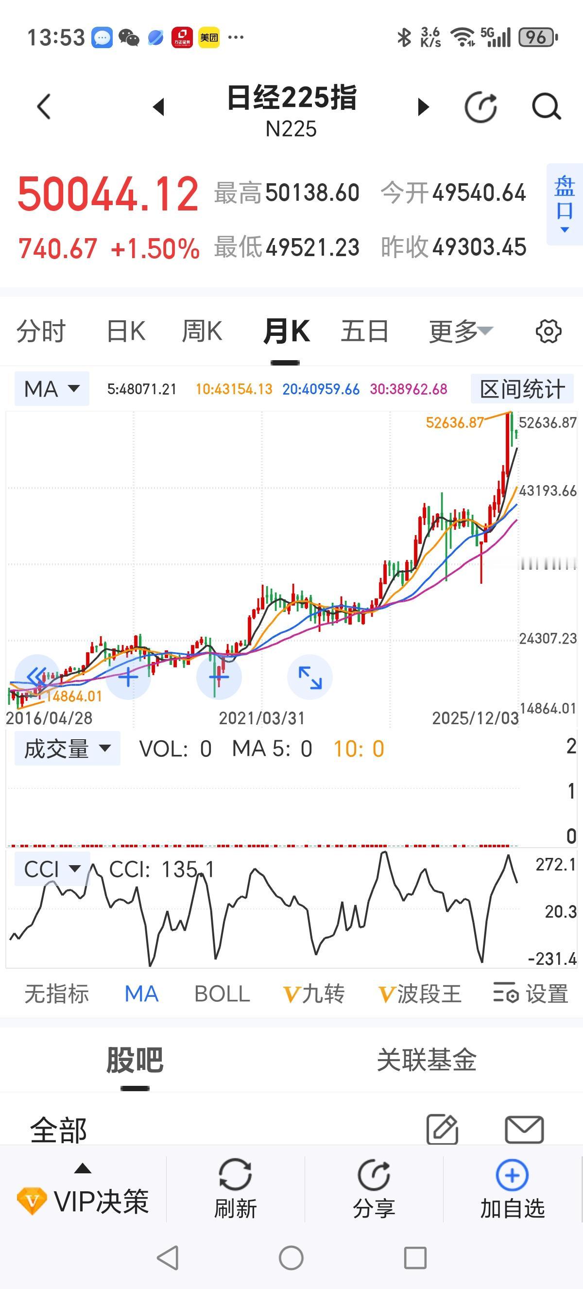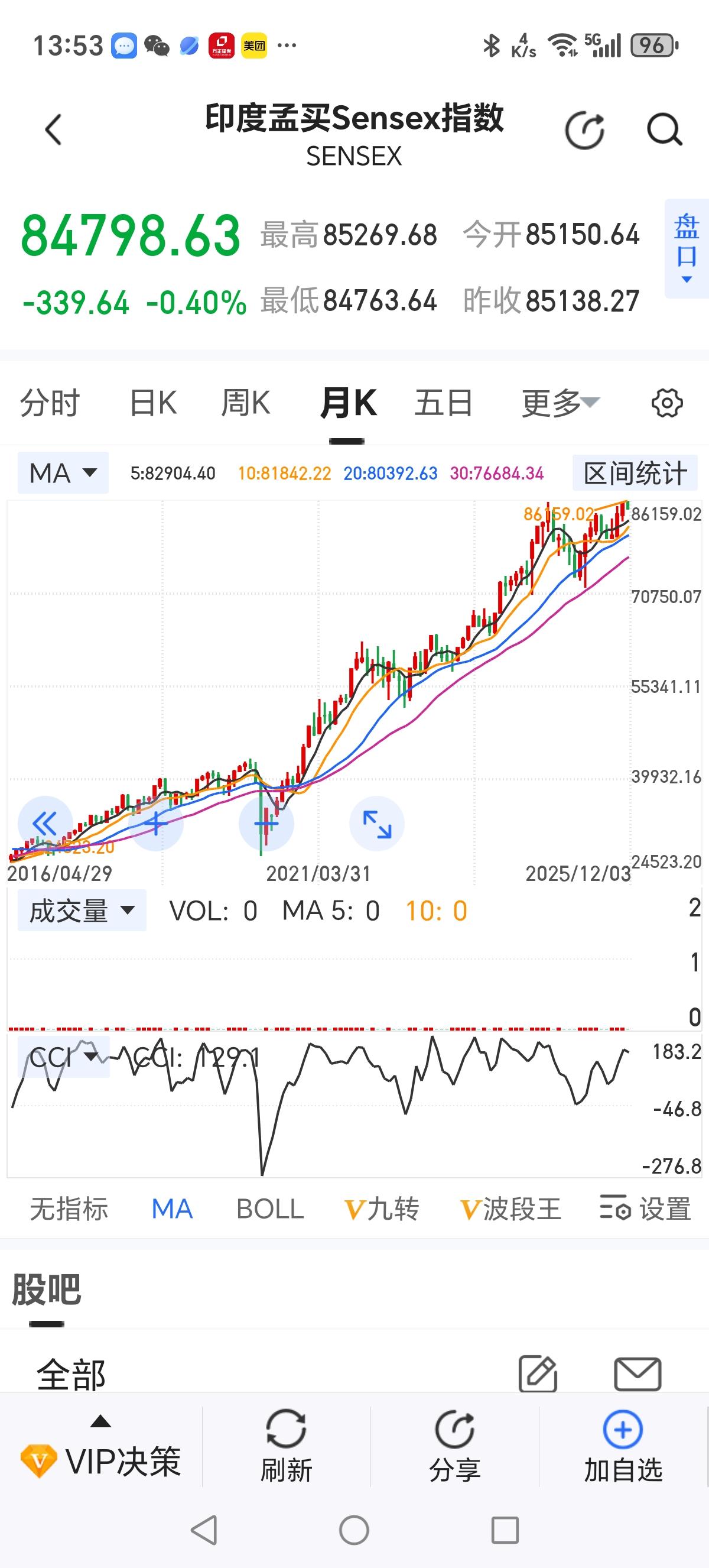 截至2025年12月3日,我截了4張股市月K线图。①美国纳斯达克。②日本东经。③印度孟卖。④中国大A。