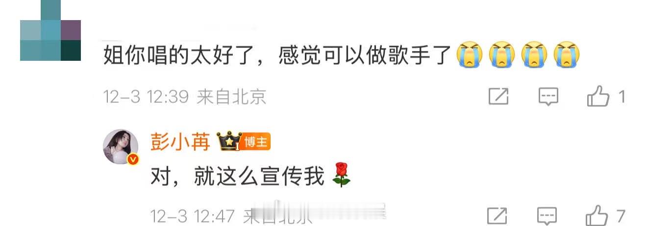 彭小苒 对就这么宣传我 彭小苒的生日单曲《把故事还给昨天》循环一百遍都不够!温柔嗓音自带故事感,唱情歌时娓娓道来的感觉,瞬间把人拉入氛围里,以后请多往歌手方向发展~彭小苒