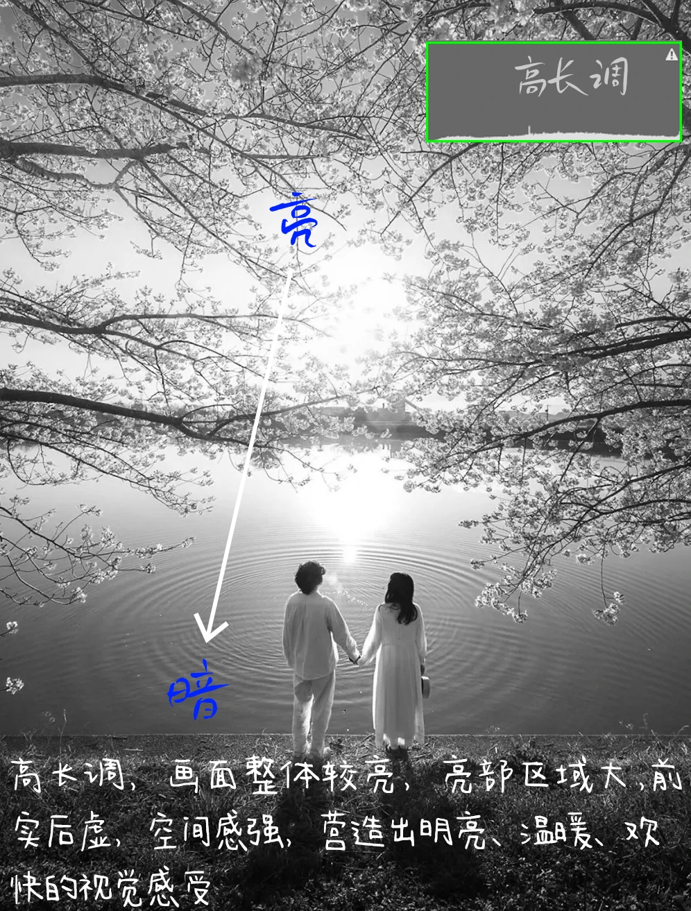 3.影调:高长调,画面整体较亮,亮部区域大,前实后虚,空间感强,营造出明亮、温暖、欢快的视觉感受。