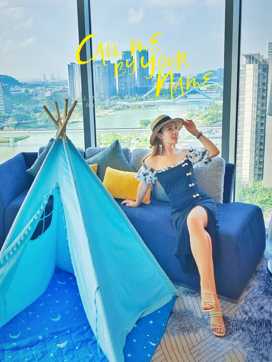 套房,里面有宝宝喜欢的滑滑梯,帐篷⛺,大嘴猴公仔,超大的落地窗,不出门就能看到外面蕉门河的全景,无论是白天还是晚上,风景都是那么美。