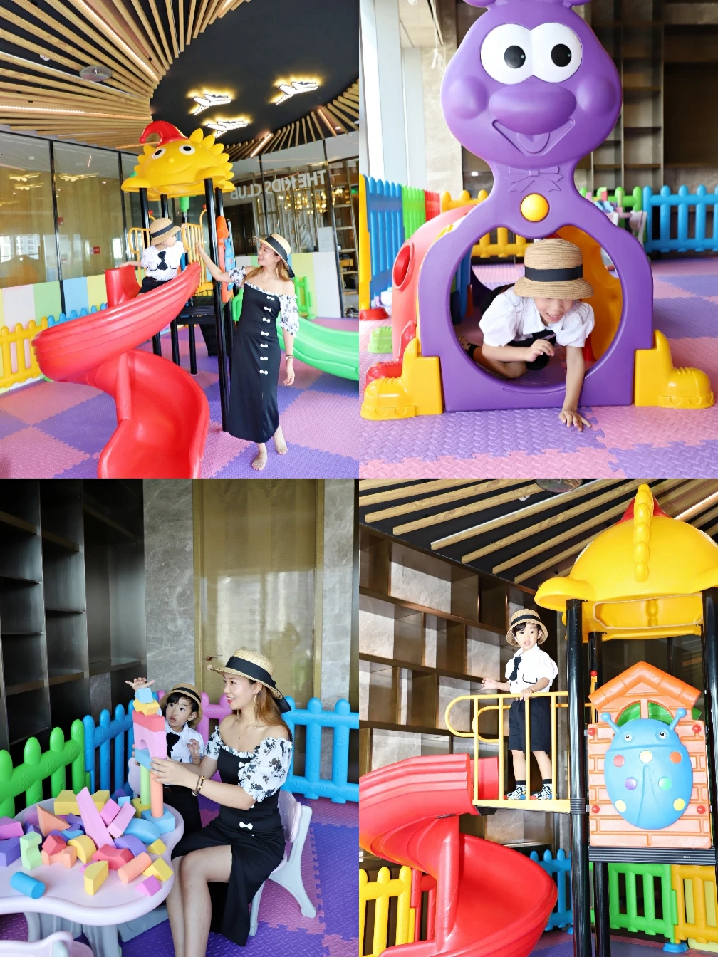 户外无边泳池,炎炎夏日就适合泡在泳池,清凉一夏。室内的儿童乐园有滑滑梯,泡沫积木拼搭,也是解放双手遛娃的好地方。