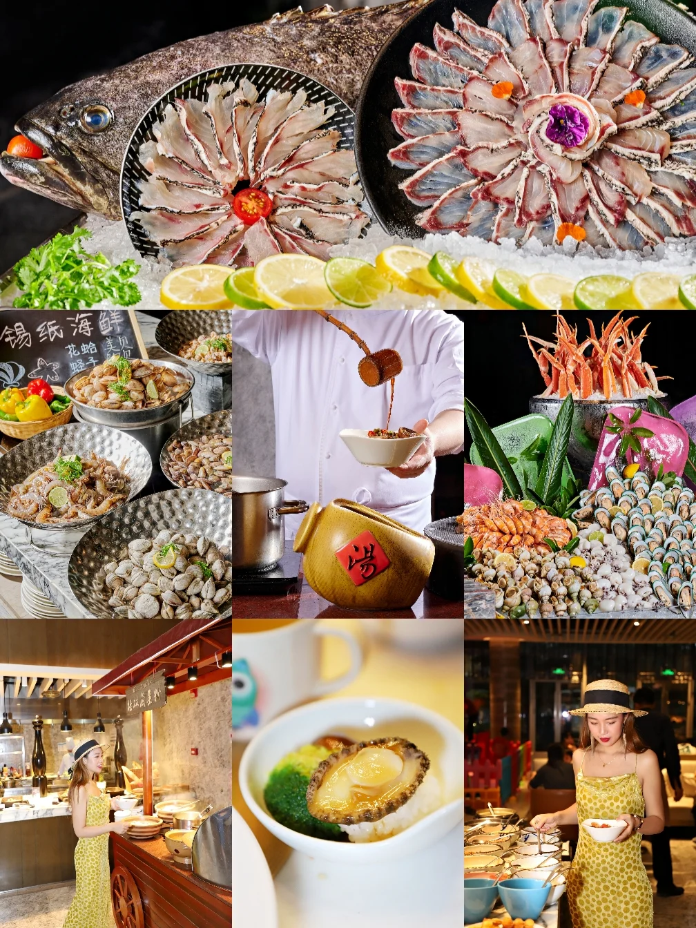 酒店🏨1楼盛宴标帜餐厅,超丰富的自助餐,海鲜,锡纸海鲜,鲍鱼饭,特色甜品,💰168就能get√,性价比超高的。