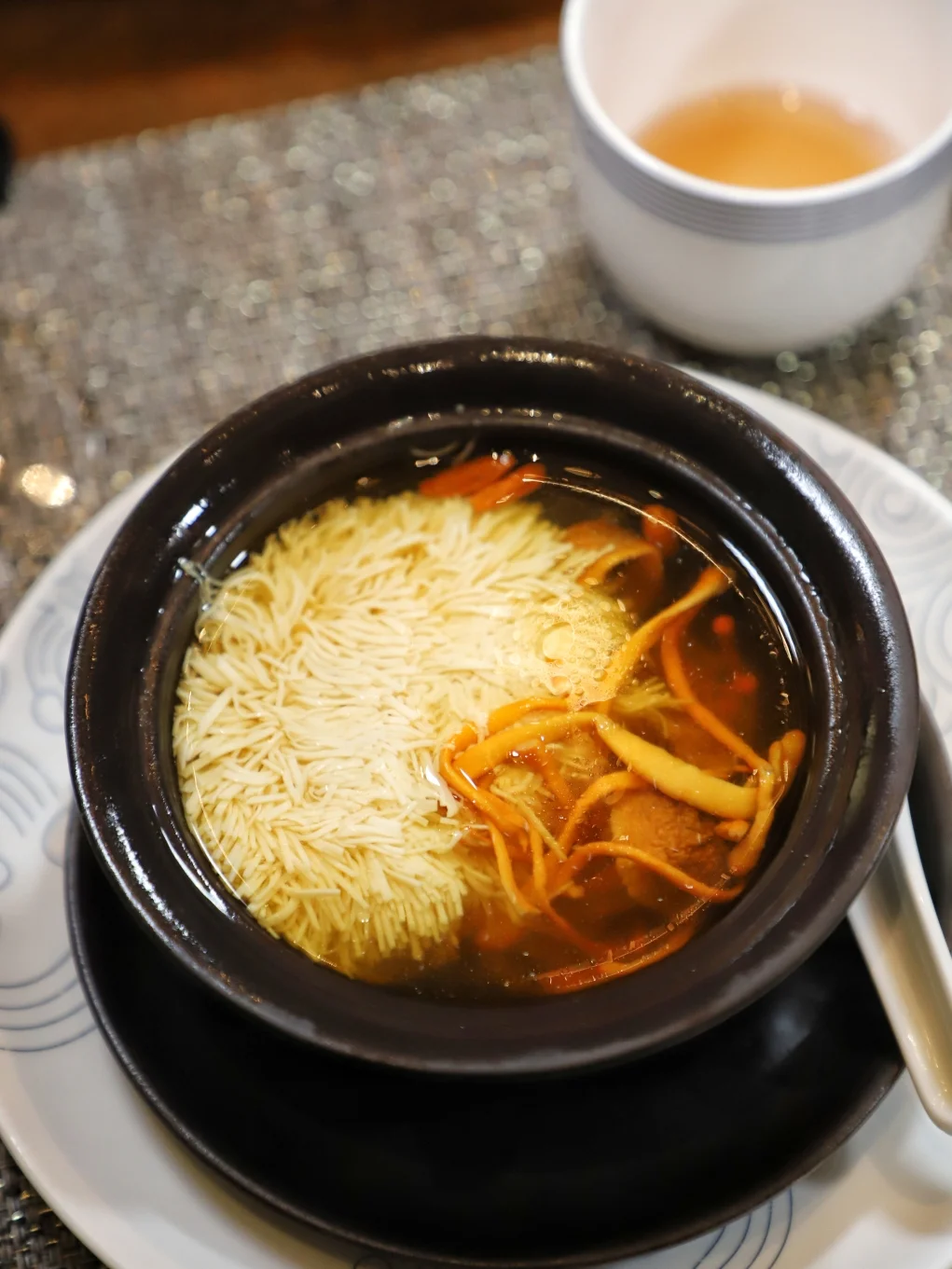 从头盘【秋葵陈皮牛肉】开始源味典雅的正统淮扬菜之旅,伴着【松茸绣球汤】的汤清味纯,邂逅【春野菜琉璃黄花鱼】,这种碰撞,让味蕾都享受,接下来来【蟹粉拆烩鱼头】吃到了千岛湖的美,还在回味的时候【糯米大青肉蟹】上来告诉我,什么才是肉蟹赐予的肉都料多的好,【黄金石榴包配鱼子酱】的搭配新奇又惊喜,【文房一口酥】竟然是可以把“毛笔”吃进肚子里,我想今晚饱餐之后,肚子里的墨水也会渐渐多了起来,夜未央,奉上【美颜美玲粥】,据说是宋美玲非常喜欢的养颜粥,我看着温馨,品尝到的是十里弄堂人文菜的素养,这很淮扬啊!