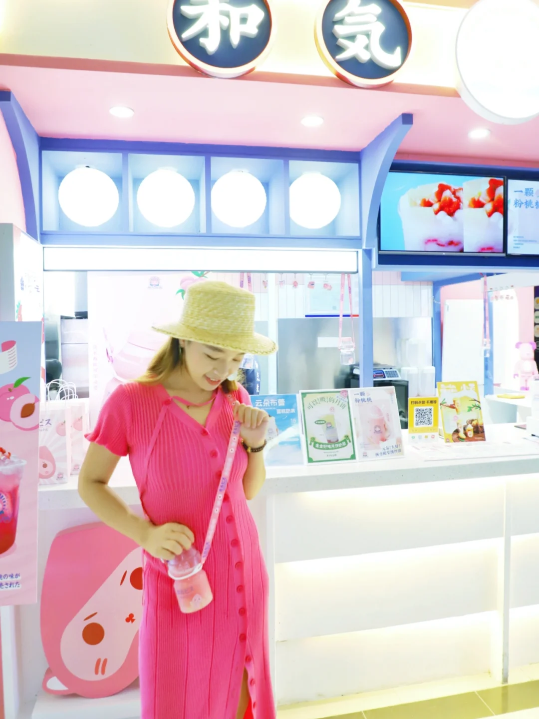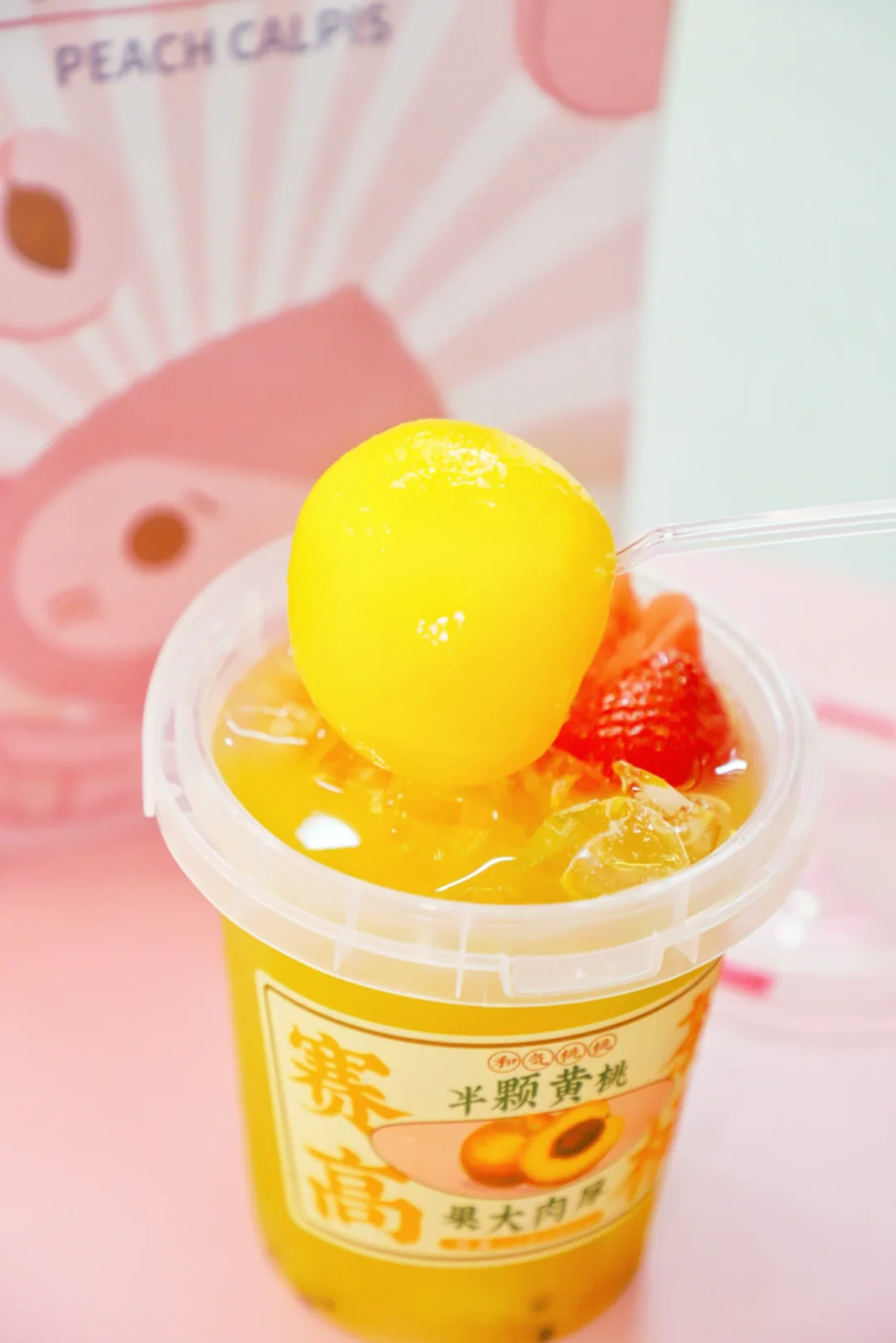 台风天都抵挡不住喝奶茶的热情,地王广场的【和气桃桃】,⭐️⭐️⭐️ 整个店都是可爱的粉色,被称为地王广场“粉嫩角落”,店里拥有超多“粉色”系列茶饮, 🌈🌈🌈比如超多小仙女喜欢清水白桃可尔必思,大儿童必备啊,完全挂着在身上就是时尚单品了,还有外形惊艳的一颗粉桃桃,男士看了都觉得有点娇羞呢,这杯可爱饮品需要先喝冰沙,再慢慢吃这个桃桃奶冻哦。 ⭐️⭐️⭐️ 男士可以选个半桃水果桶,有半个黄桃在里面啊,超抵啊!