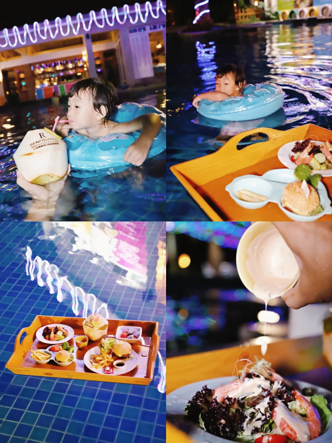 安排一个漂浮晚餐吧,边游边就餐,夏天度假带娃的极佳方式之一。