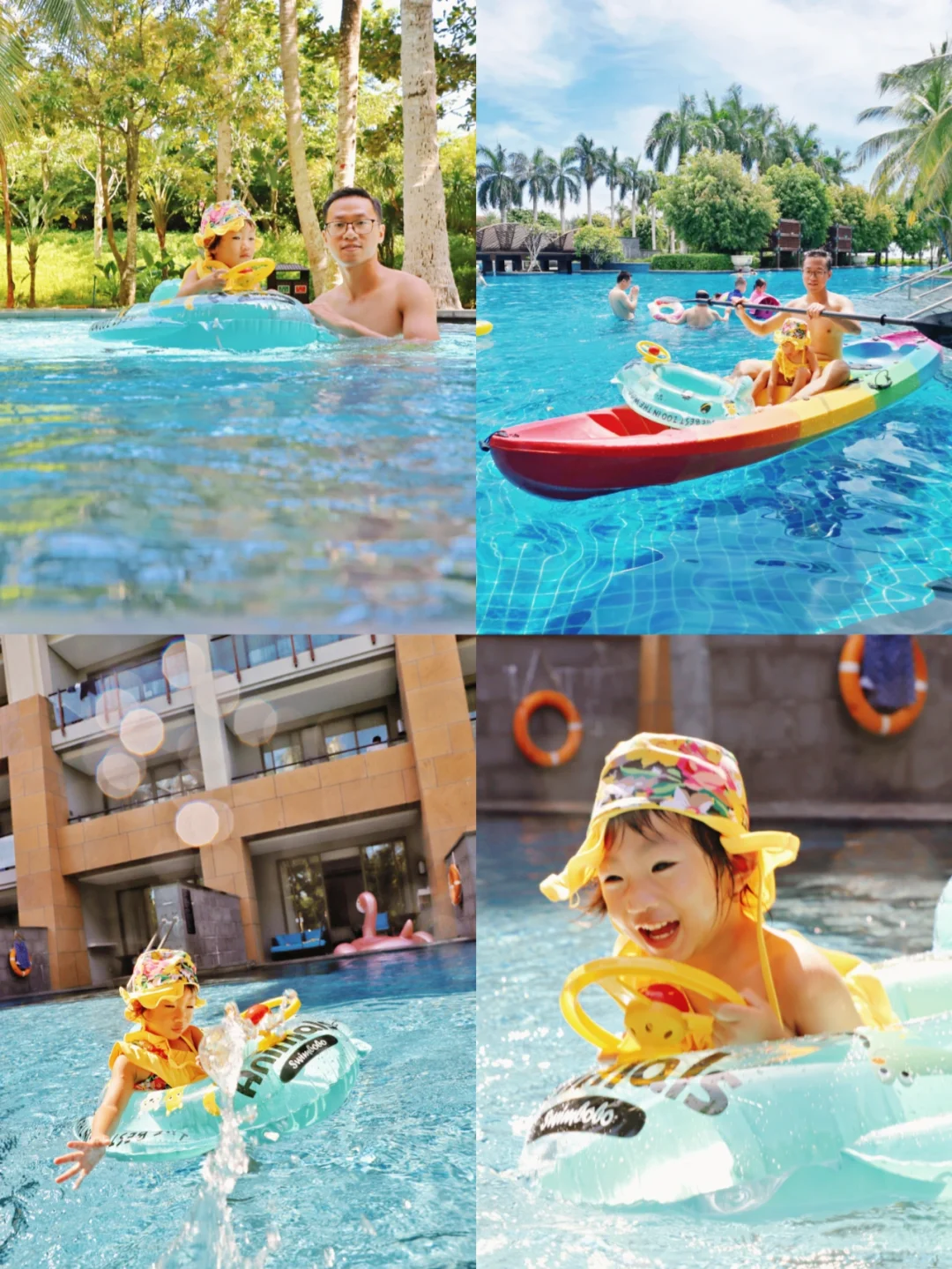 美丽的池畔房超有度假feel,池边的风景也是旖旎,而随时随地可以下水玩耍乐坏了我宝,喜欢酒店里的“玛古·艾莲娜”洗浴系列,香气太好闻了。