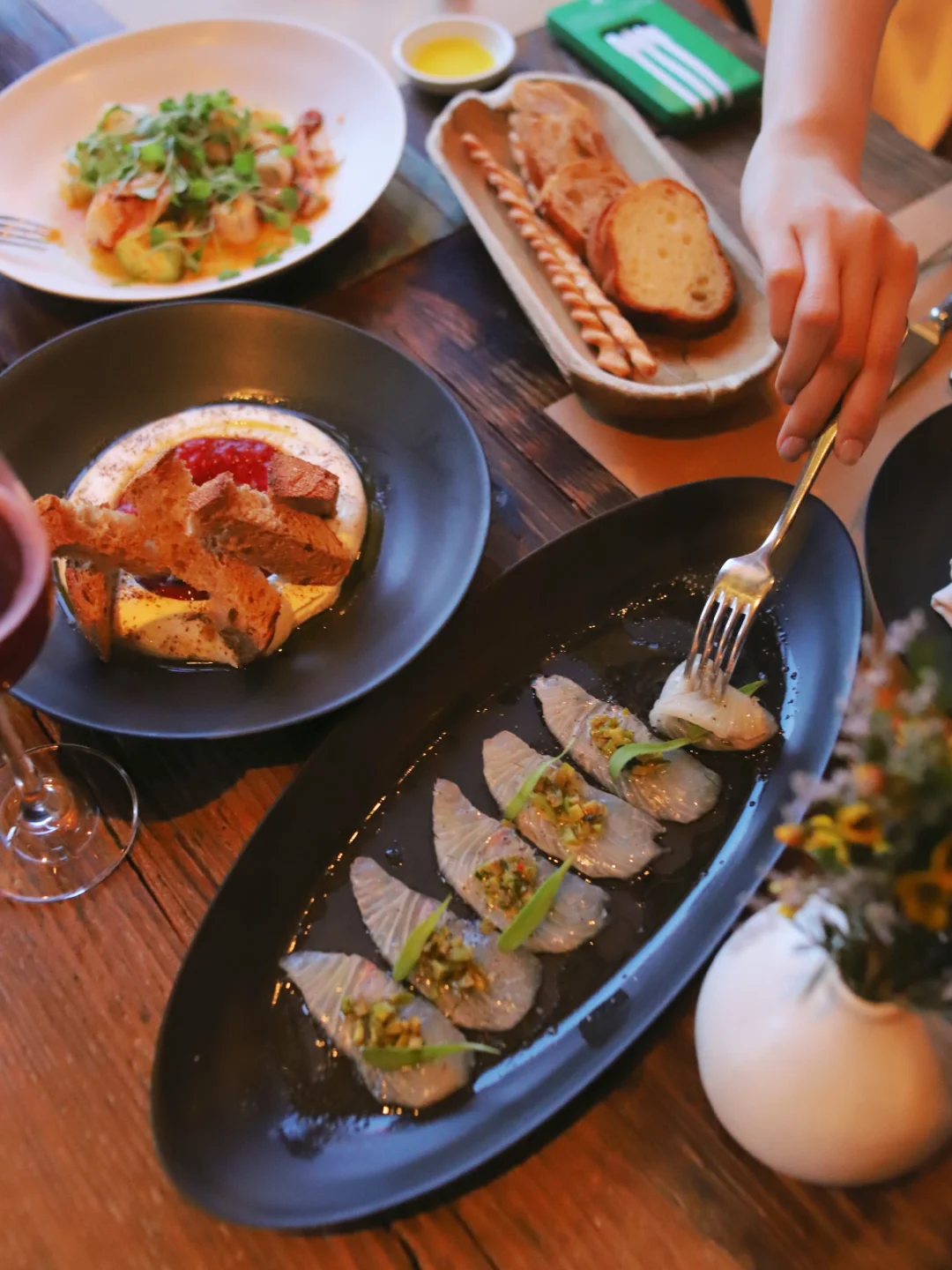 餐厅环境太有感觉了,很多景观位置,有机会一定预约到窗边位置啊,这里有很不错的机位,随便都能拍越到东方明珠塔的同框画面,晚上那种氛围感就更加浓厚,在吧台上喝个微醺气泡酒,感觉很舒服自在。