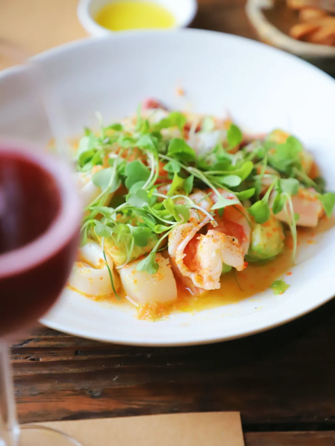 菜品很丰富,出品摆拍真的的把浪漫主义进行到底了,前菜海鲜沙拉,有东南亚那种小清新的酸爽。