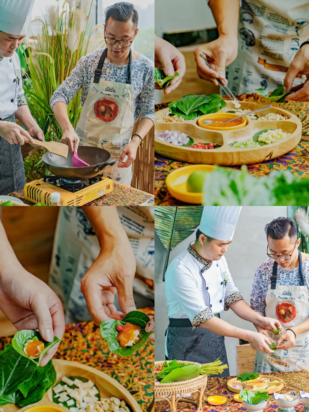 很荣幸我这次约到菁藤泰国餐厅的大厨来学习烹饪泰国美食,大厨都是师从泰国厨师,而且专门在泰国学习过的,这次带来泰国小吃“妙康”和皇家金咖喱蟹肉。