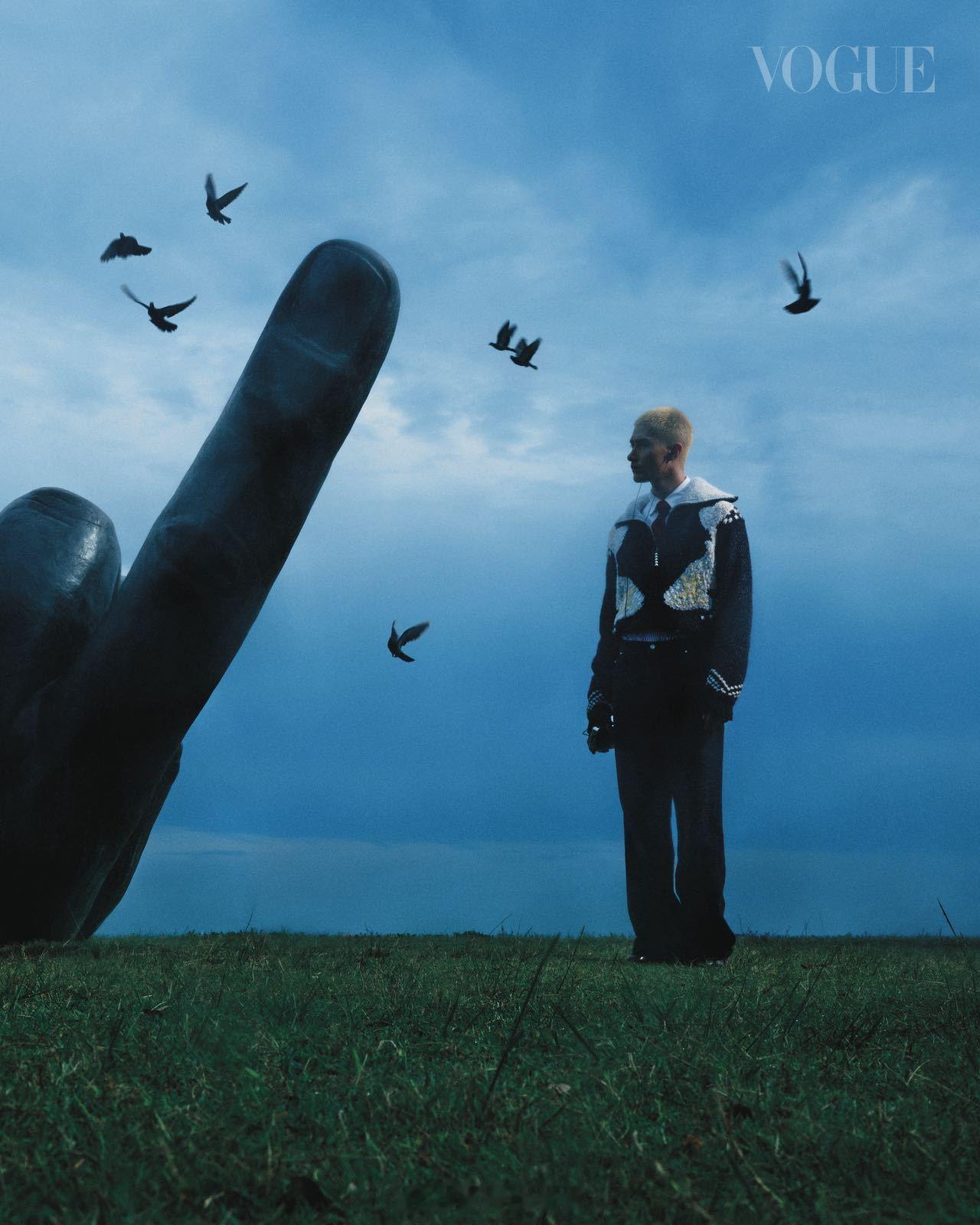 米卡腹肌天使散发着荷尔蒙的同时还能散发神性,VOGUE新加坡版海边裸上身背翅