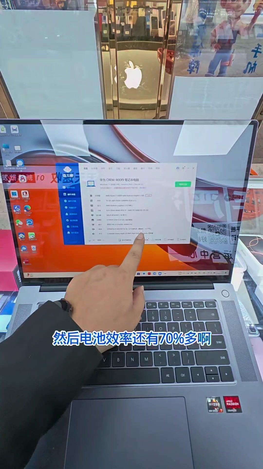 苹果15换华为本值吗?兄弟们今天没花钱得了一个华为电脑,说是没花钱,其实是用一台苹果15换的。 这台是华为MateBook16,锐龙7代处理器,16+512G固态硬盘,配置挺能打的。 屏幕是16寸视网膜屏,京东方的,显示效果很清晰,用着应该很舒服。 电池效率还有70%多,日常办公完全够用。 客户说这电脑当时买的时候七八千,现在行情两千多,抵了个手机,等于用手机换了台笔记本,感觉还挺划算的。 现在店里手机多,两千多就能拥有一台华为高端本,挺哇塞的,喜欢的老板赶紧来。