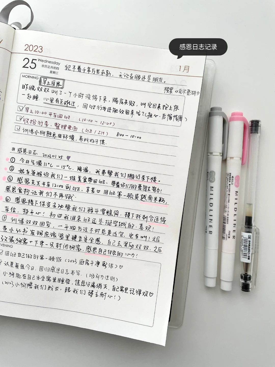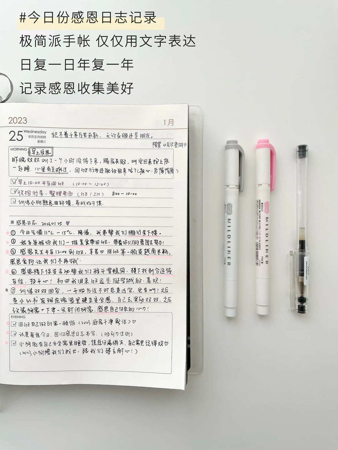 从16年我就开始第1本手帐了,现在我更喜欢极简风格,新一年我又恢复感恩日志撰写,会感恩的人也会有更多好运。今天我的感恩日志写了5点,的确有太多感恩的人事物了。